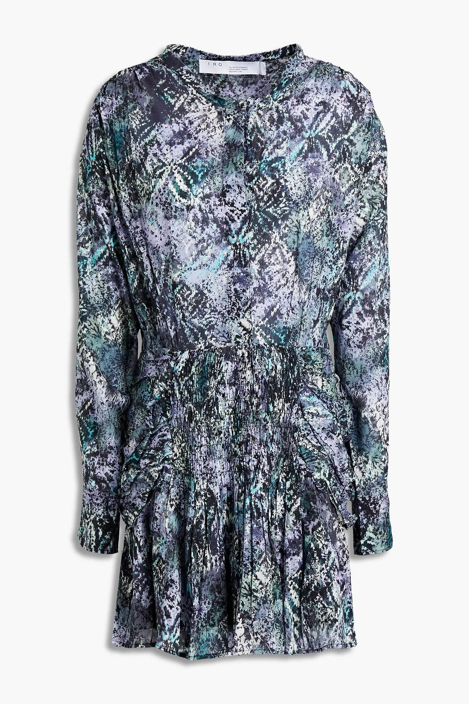 Dress printed cotton shirred trims ruched buttoned cuffs concealed button fastening at front partially lined non-stretchy fabric mid-weight fabric machine wash imported 100% Cotton Product Code 38063312418523516