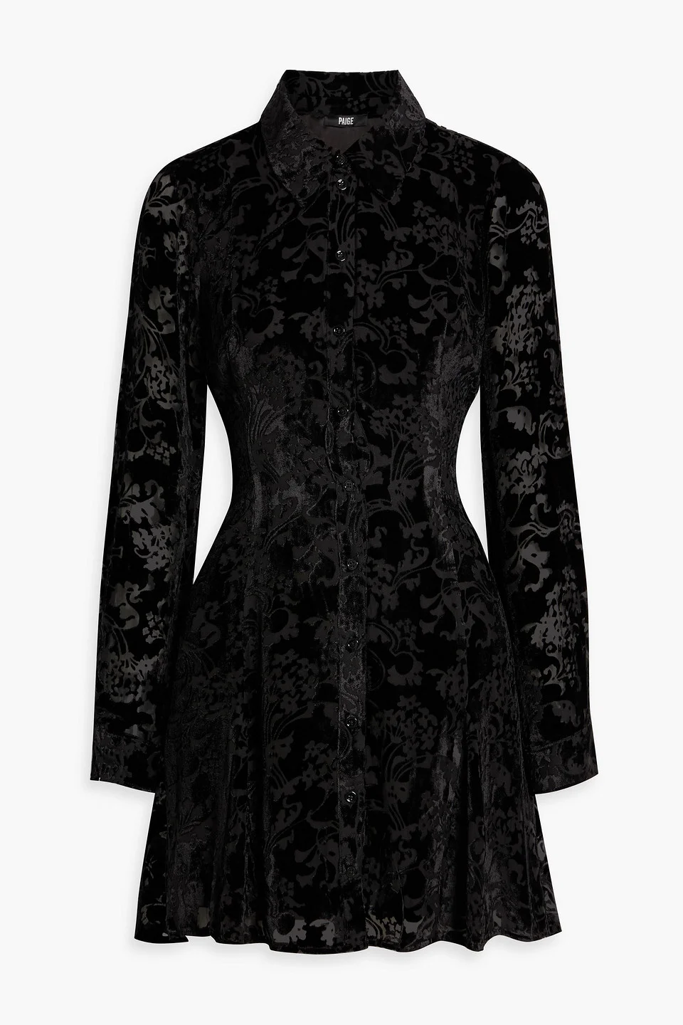 Shirt dress devore-velvet buttoned cuffs button fastenings through front fully lined mid-weight, non-stretchy fabric dry clean imported 71% Viscose 29% Silk Product Code 46376663162996623