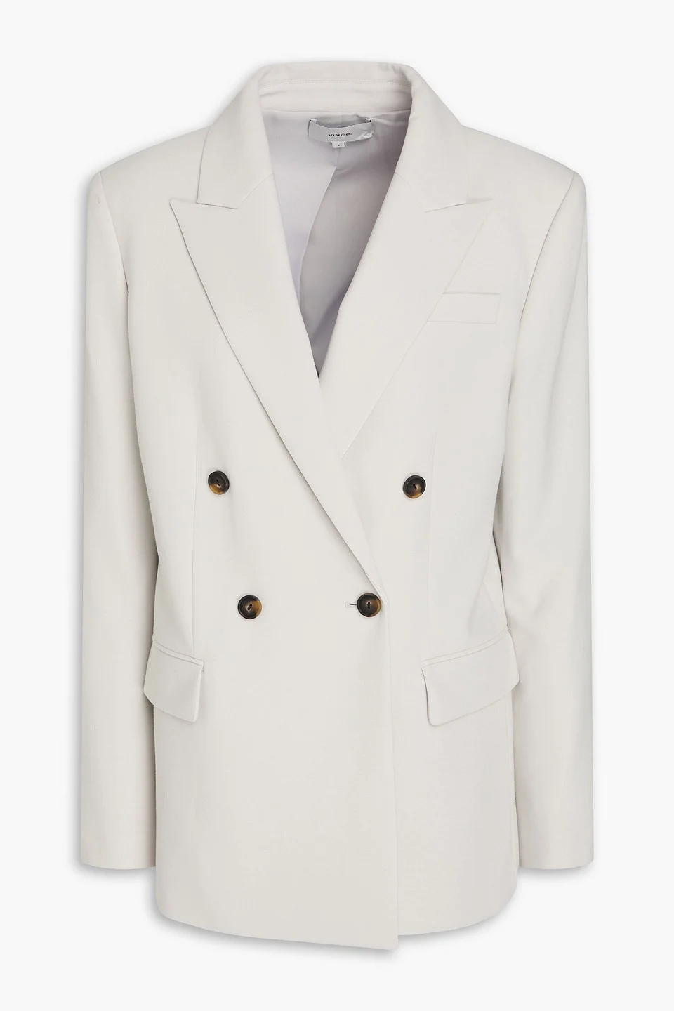 Blazer pique shoulder pads buttoned cuffs breast pocket front flap pockets button fastening at double-breasted front fully lined back vent mid-weight, slightly stretchy fabric hand wash or dry clean imported 63% Polyester 30% Viscose 7% Elastane Product Code 46376663163011887