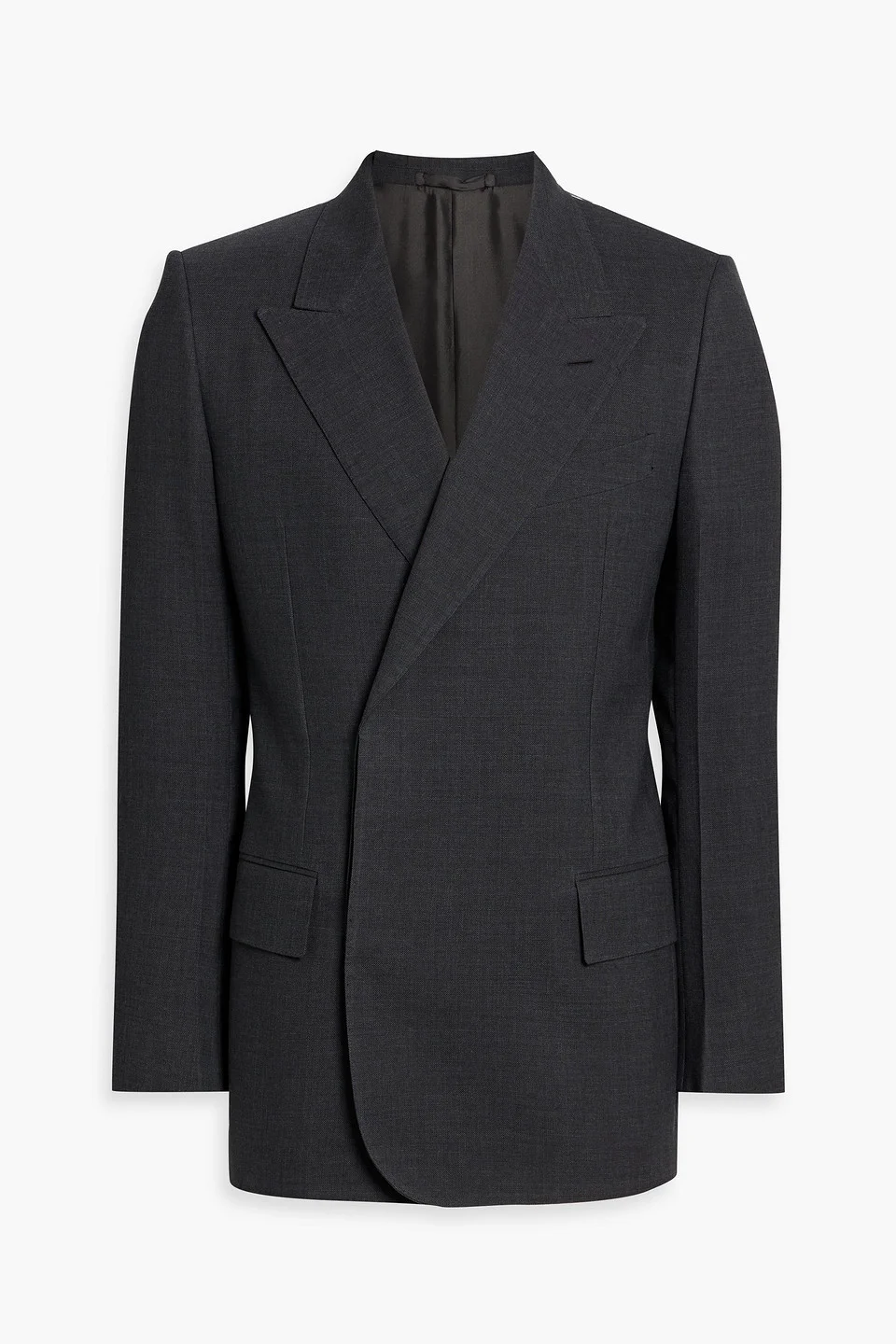 Blazer woven buttoned cuffs chest pocket front flap pockets concealed button fastenings through double-breasted front fully lined dual back vents mid-weight, non-stretchy fabric dry clean made in italy 56% Polyester 41% Wool 3% Elastane Product Code 43769801097423340