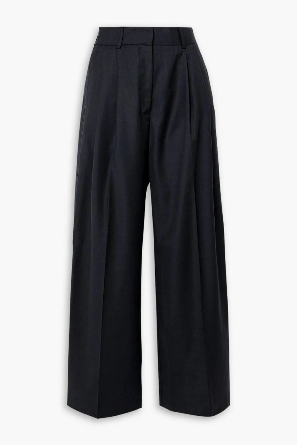 Wide-leg pants wool-twill pressed creases pleated two front slit pockets two back welt pockets belt loops high-rise cut concealed hook and zip fastening at front mid-weight, non-stretchy fabric dry clean imported BEARE PARK's tailored pants are a timeless investment, they'll go with absolutely everything in your closet. They're cut from wool-twill with double front pleats to refine the relaxed, wide-leg shape. Tuck in a top to emphasize the high-rise waist. 100% Wool Product Code 1647597352836608