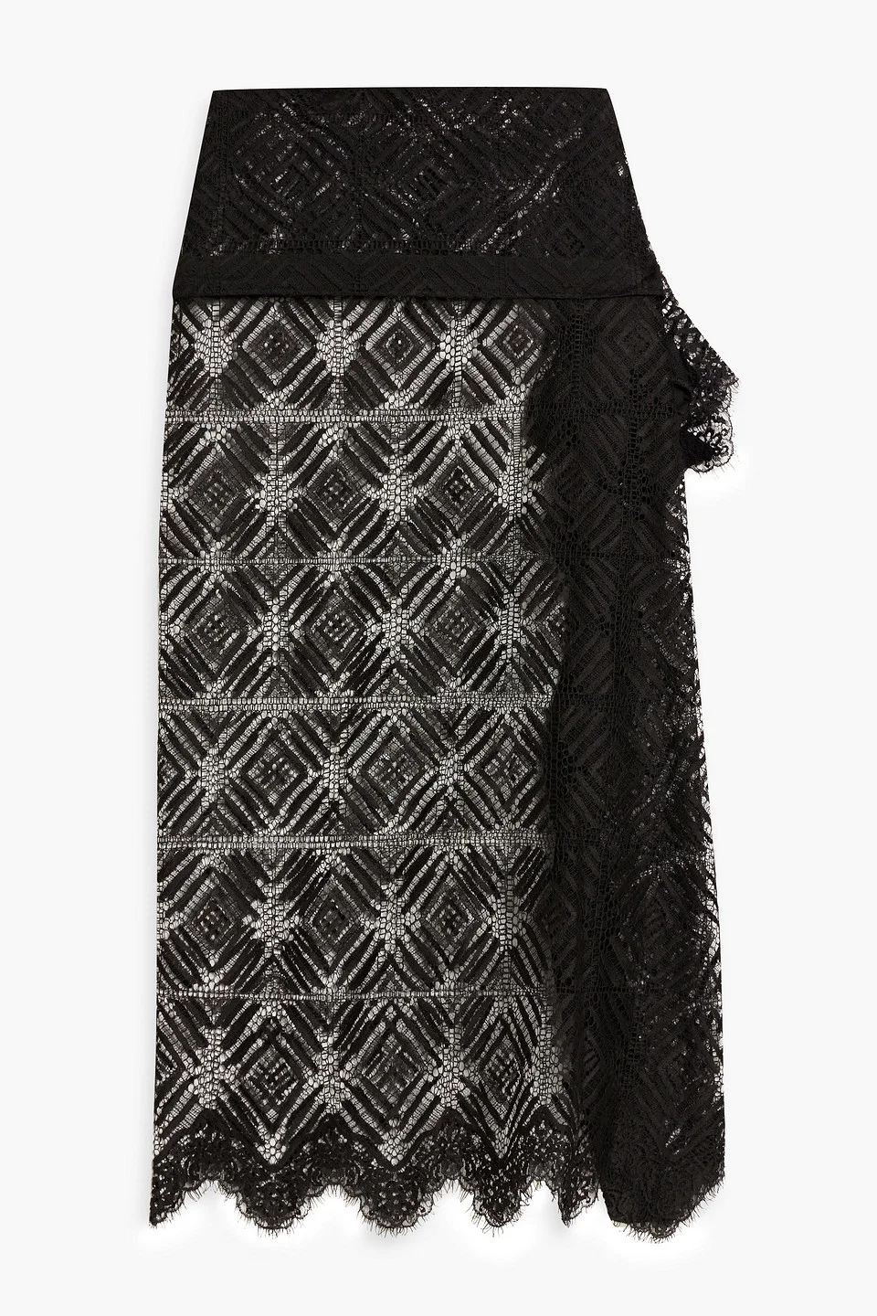 Skirt cotton and silk-blend draped panel scalloped trims concealed zip fastening along side lightweight knit dry clean 60% Cotton 40% Silk Product Code 1647597355307756
