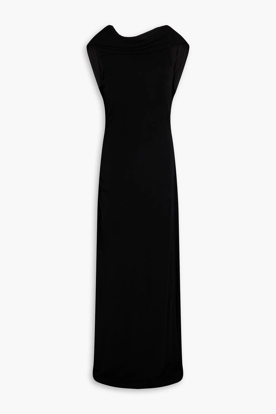 Invest in this elegant black dress—it’s one to wear over and again gown jersey draped open back detachable belt two side slit pockets slips on mid-weight, stretchy fabric dry clean made in italy 100% Viscose Product Code 1647597355794333