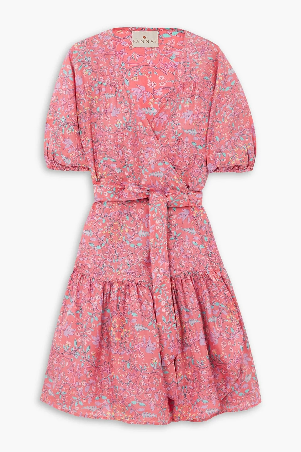 Wrap dress floral-print silk-habotai puffed sleeves ties at waist lightweight, non-stretchy fabric dry clean imported Hannah Artwear's 'Elliana' dress is hand-dyed and block-printed with the label's 'Primrose' motif, the process means there will be small differences between each piece, making them truly unique. It's cut from lightweight silk-habotai and has puffed sleeves and an adjustable wrap front. 100% Silk Product Code 1647597347728414