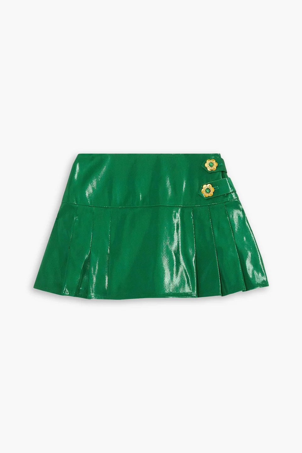 Skirt silk lame pleated embellished buttoned tabs fully lined concealed hook and zip fastening at side mid-weight, non-stretchy fabric dry clean made in uk Soon after graduating from London’s Central Saint Martins, Miss Sohee's designs began to grace the pages of top fashion publications, including VOGUE and Vanity Fair . Certain to make another style splash, this mini skirt is cut from metallic silk in a striking green shade. It's embellished with signature flowers and has sharp box pleats. 100% Silk Product Code 1647597346096193