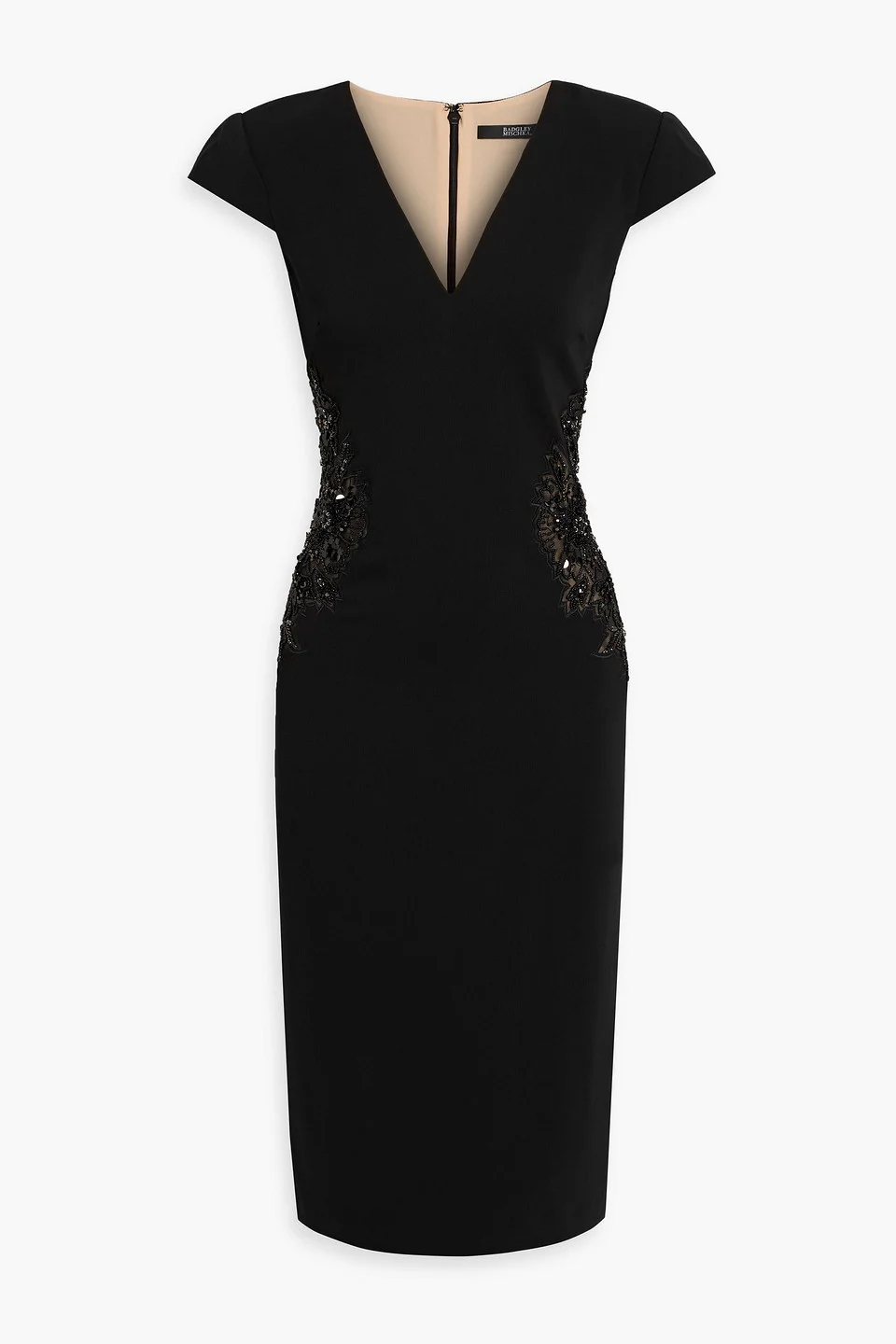 Embellished tulle-paneled crepe midi dress