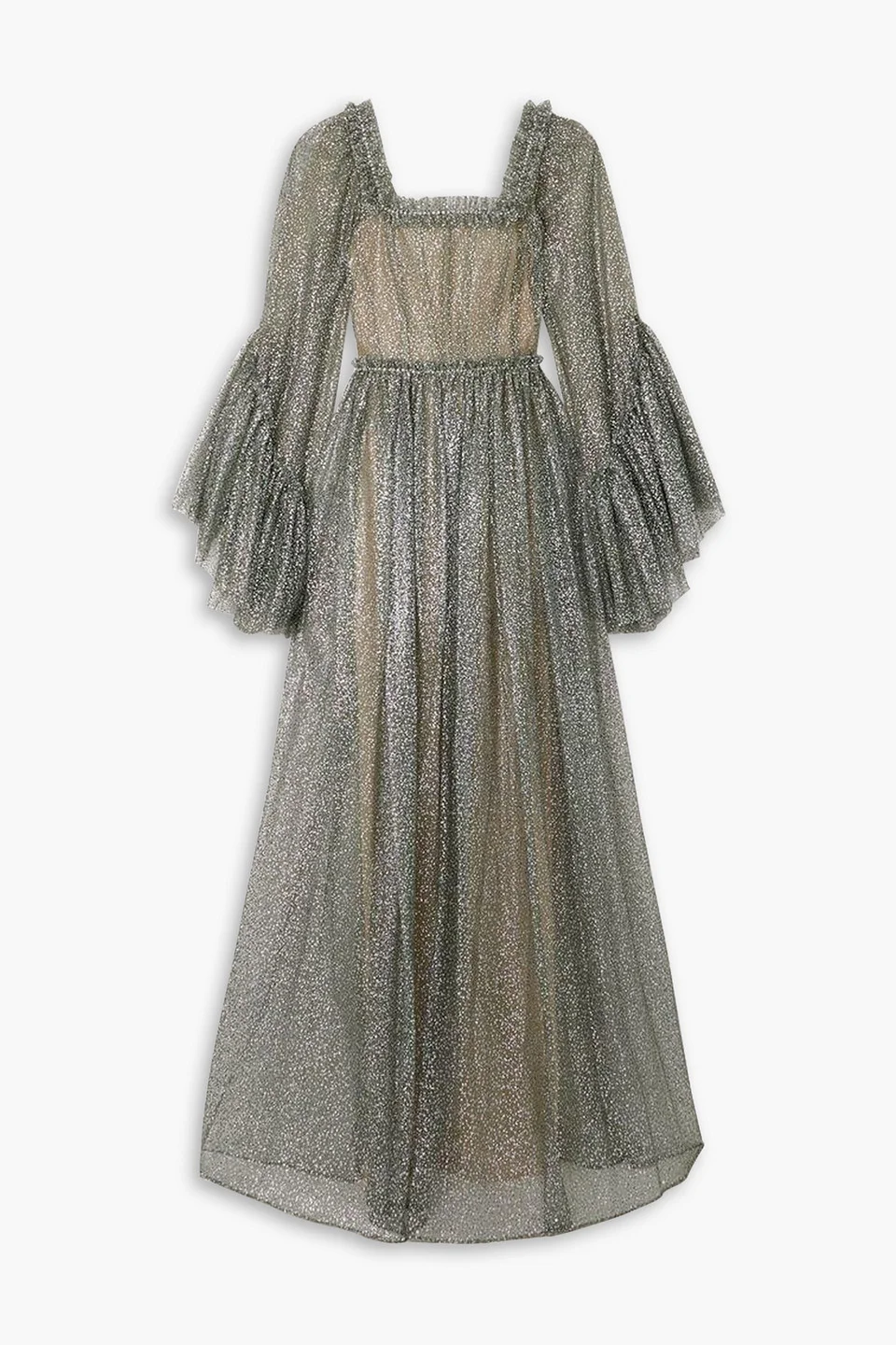Enchanteresse ruffled glittered tulle maxi dress