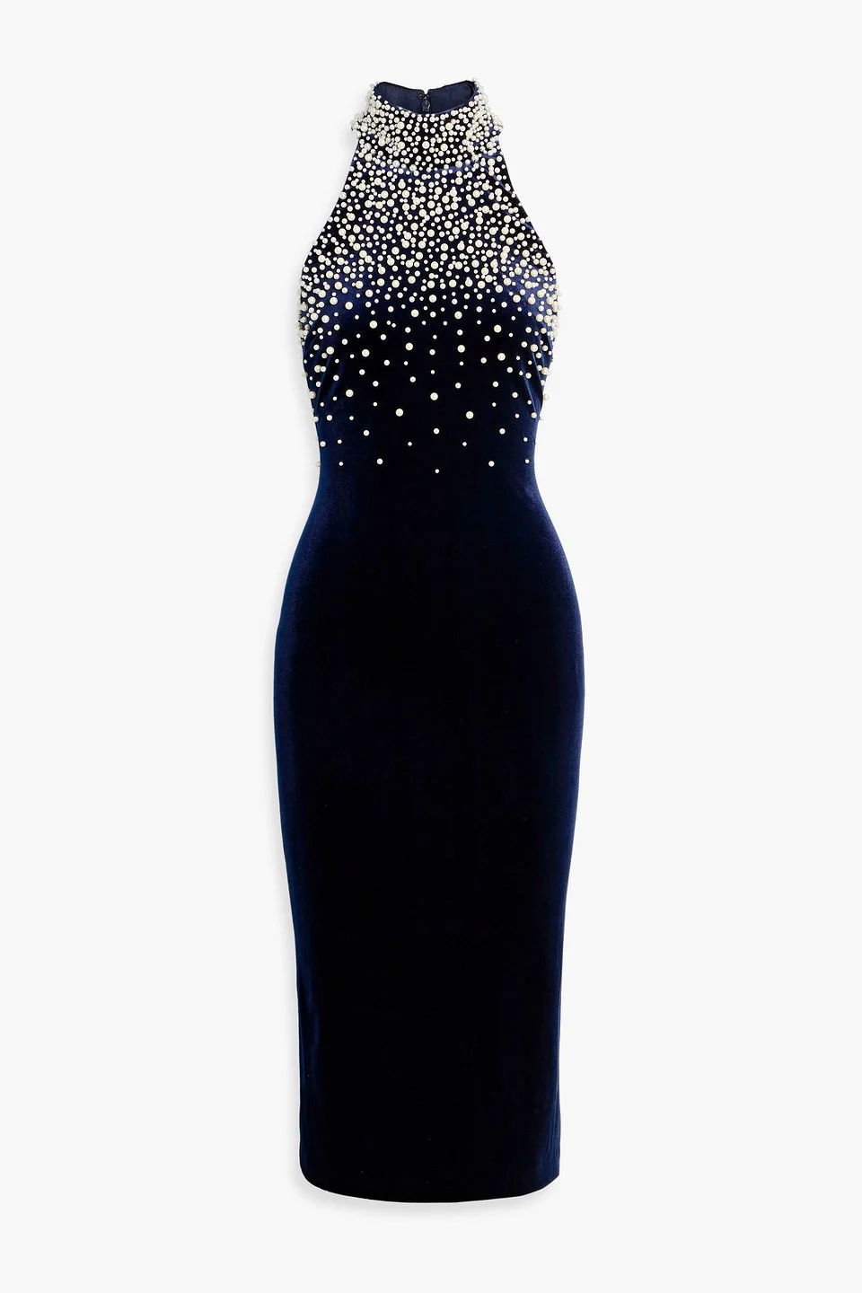 Faux pearl-embellished velvet midi dress