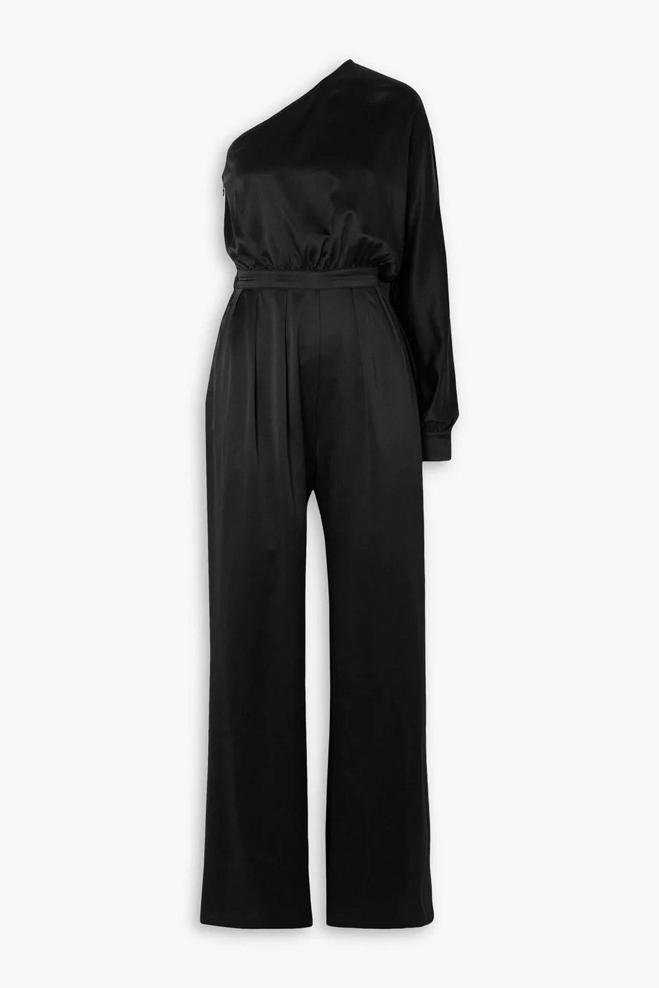 Jumpsuit satin silk-blend gathered partially elasticated waist two side slit pockets concealed zip fastening along side mid-weight, slightly stretchy fabric dry clean Fittingly named, RIVET's 'Flirt' jumpsuit will make you feel your most confident for an evening out. It's made from silk-blend satin that feels so light against bare skin and has wide legs, perfectly balanced by the waist-cinching belt. Take style notes from the label and sweep your hair back to highlight the one shoulder. 95% Silk 5% Lycra® Product Code 1647597285518426