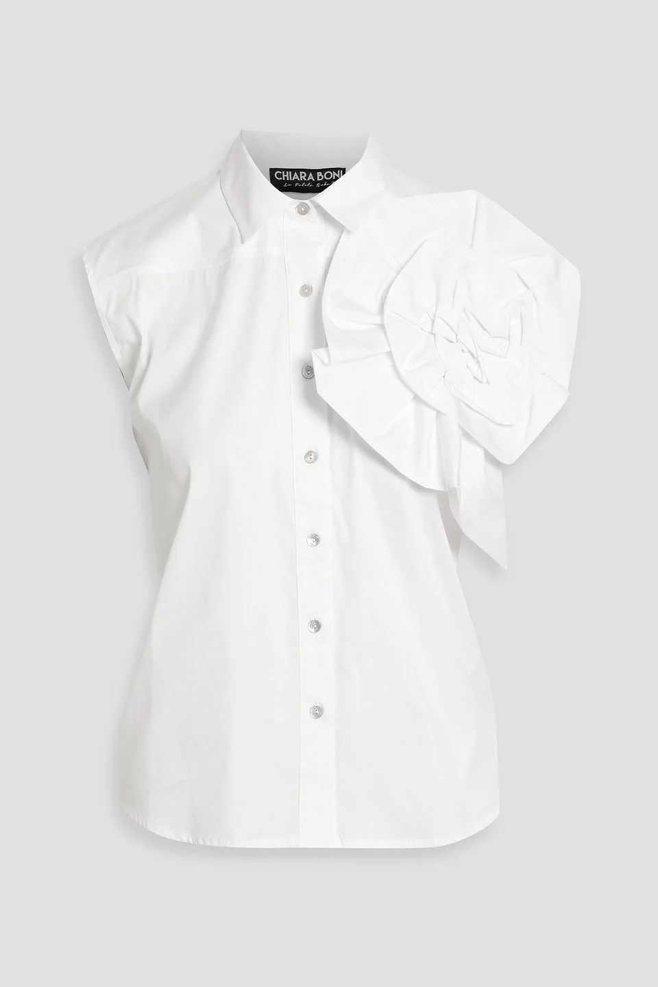 Shirt cotton-blend poplin floral appliques button fastenings through front mid-weight, slightly stretchy fabric hand wash or dry clean made in italy 67% Cotton 27% Polyamide 6% Elastane Product Code 46376663163066771