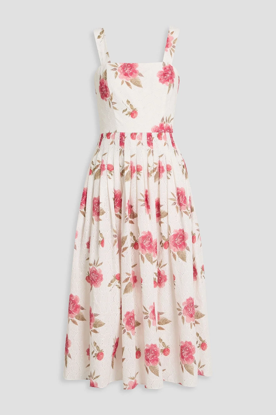 Floral-print broderie anglaise cotton midi dress