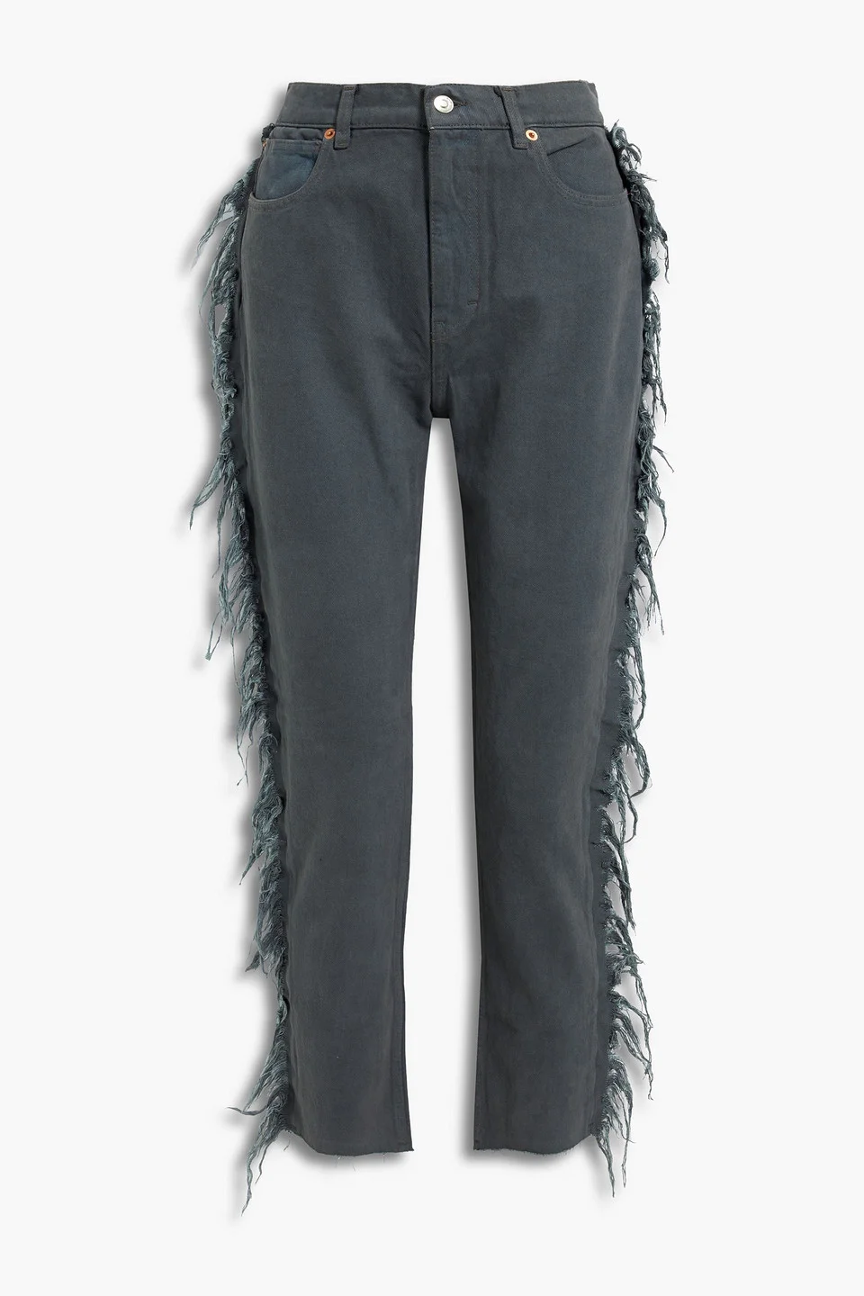 Slim-leg jeans denim cropped frayed trims belt loops high-rise cut multipockets button and concealed zip fastening at front non-stretchy fabric mid-weight fabric machine wash made in italy 100% Cotton Product Code 1647597282780592