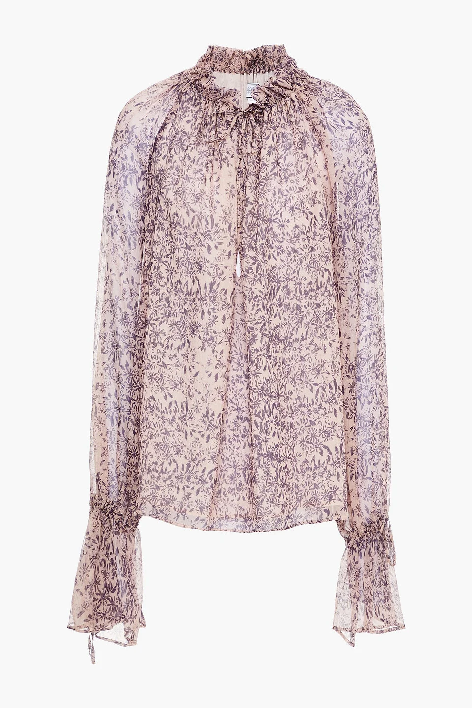 Blouse floral-print silk-crepon gathered elongated sleeves drawstring cuffs tie-fastening keyhole at front partially lined non-stretchy fabric lightweight fabric dry clean made in italy 100% Silk Product Code 17411127375850976
