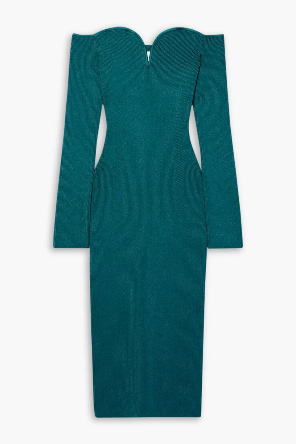 Off-the-shoulder dress ribbed-knit back split slips on internal boning mid-weight knit dry clean imported 82% Viscose 11% Polyester 6% Polyamide 1% Elastane Product Code 1647597358833313