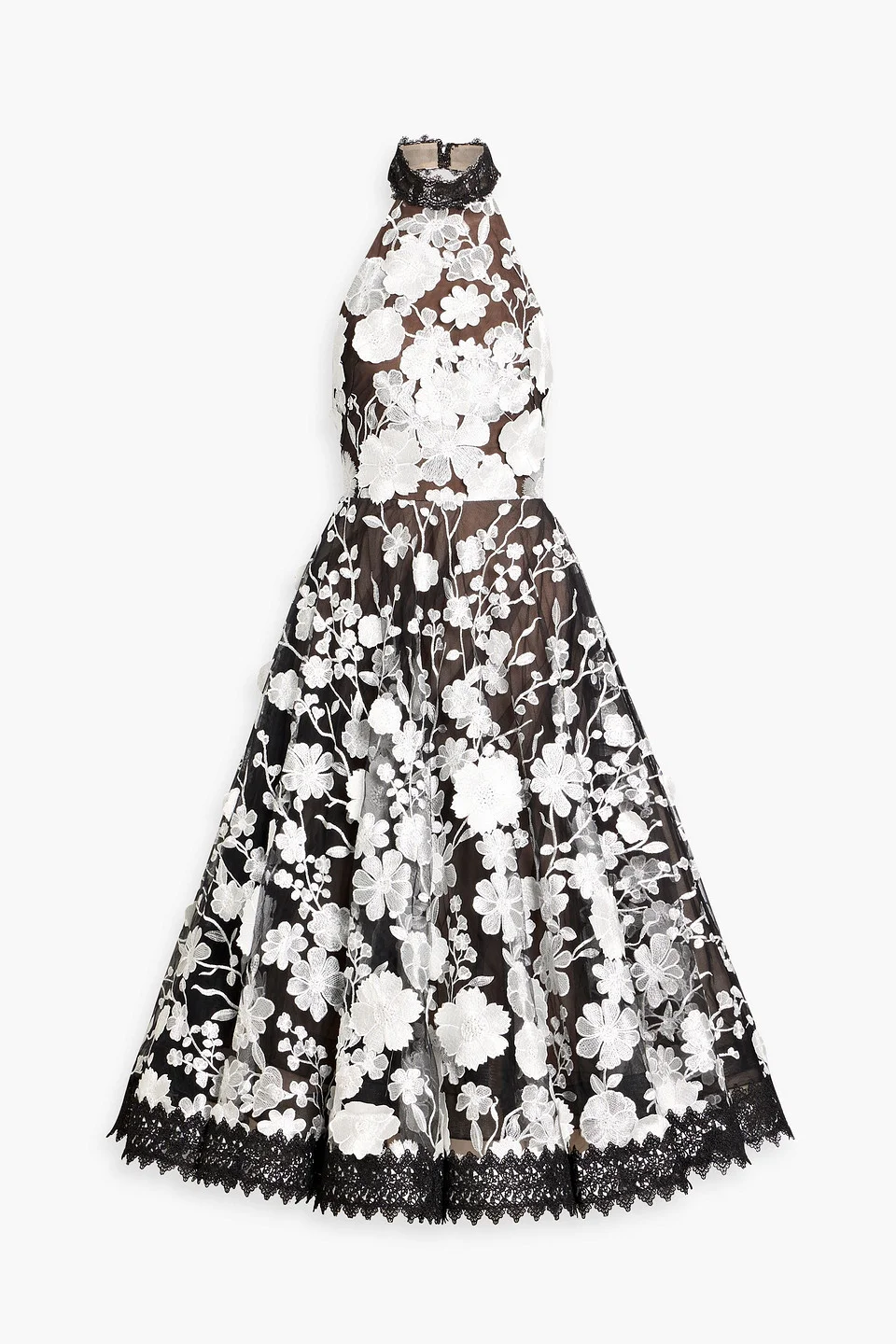 Greta fembroidered tulle halterneck midi dress