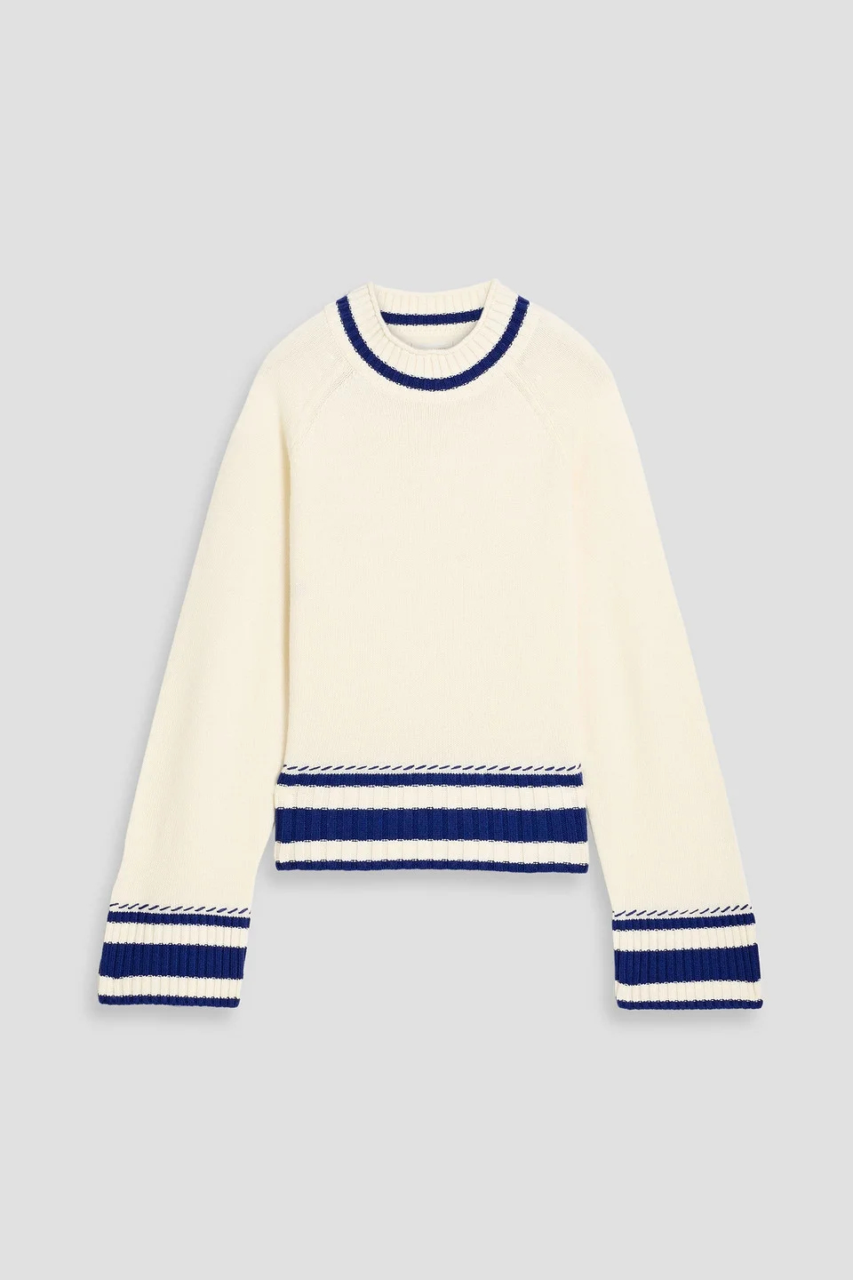 Sweater striped wool and cashmere-blend embroidered trims ribbed trims slips on mid-weight knit machine wash or dry clean imported 90% Wool 10% Cashmere Product Code 46376663163000097