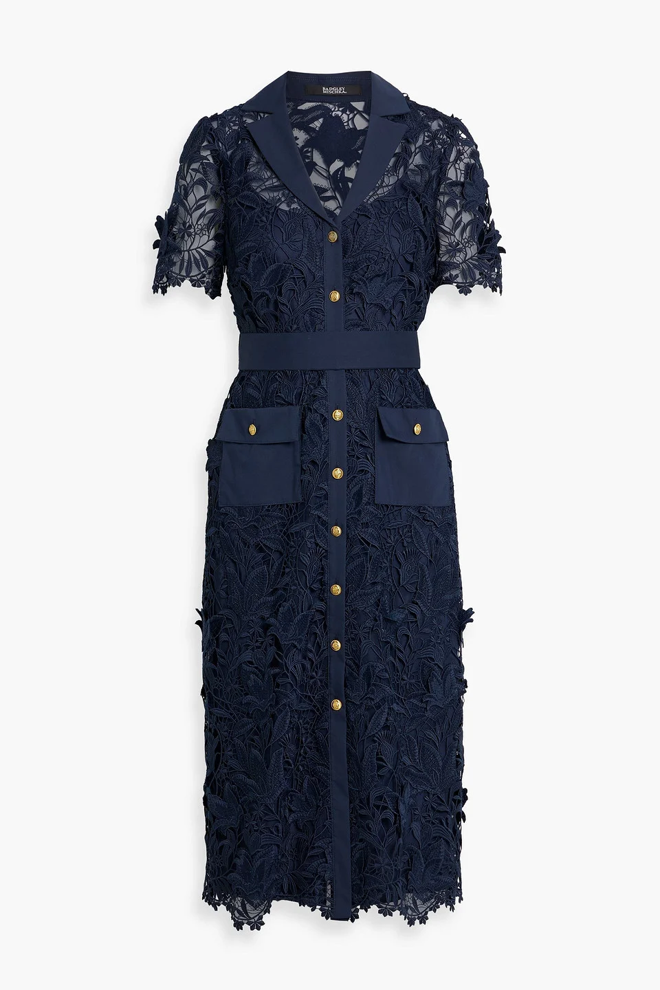 Shirt dress guipure lace detachable waist tie front patch pockets button fastenings through front slip to line mid-weight, non-stretchy fabric dry clean imported 100% Polyester Product Code 46376663163101712