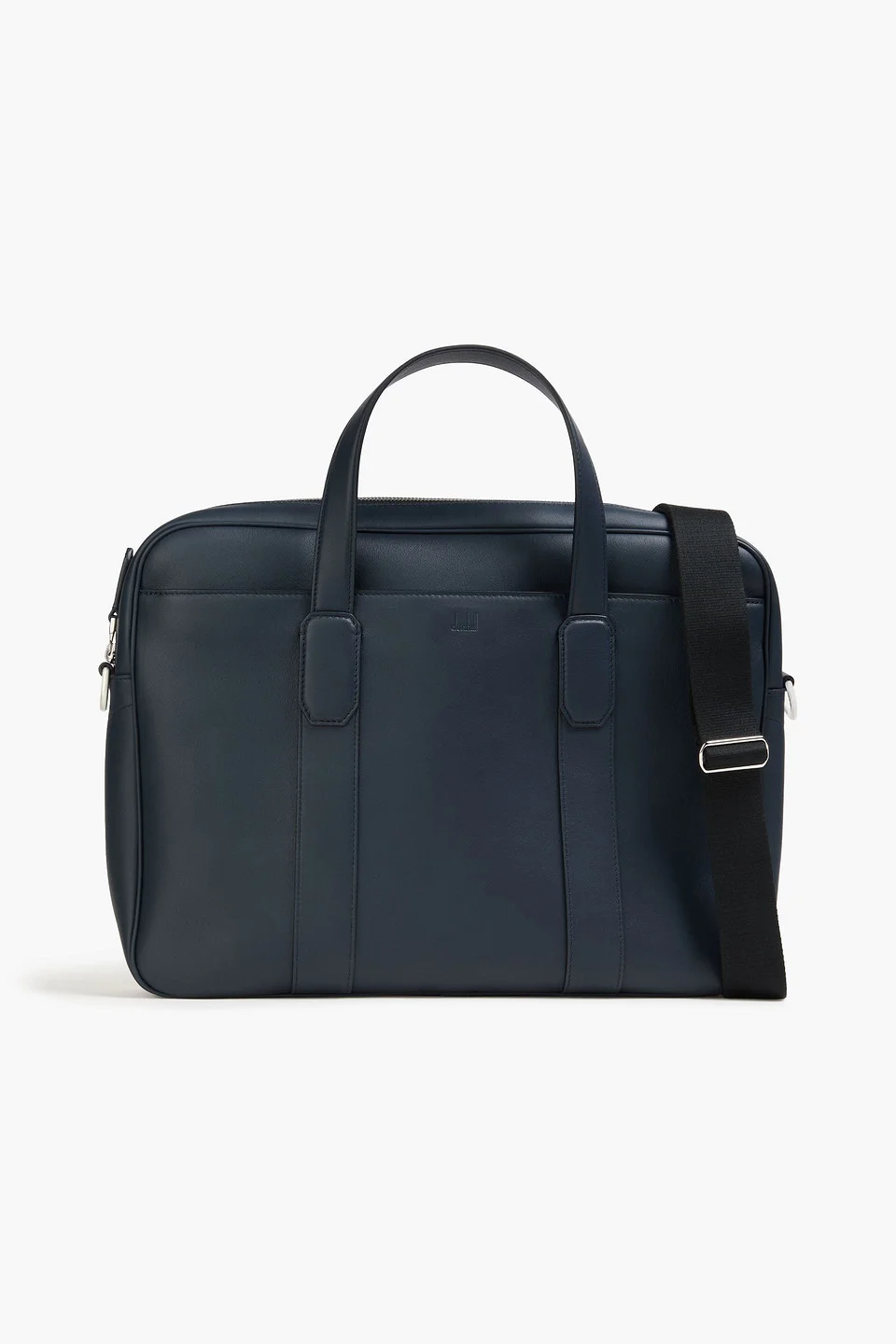 Laptop bag leather silver hardware designer stamp detachable adjustable shoulder strap zip fastening along top and sides fully lined in twill internal pockets padded laptop sleeve front external compartment back external compartment sized for work trips, this bag will fit your essentials plus a 15-inch laptop and folios made in italy 100% Calf-skin leather Product Code 46376663162894584