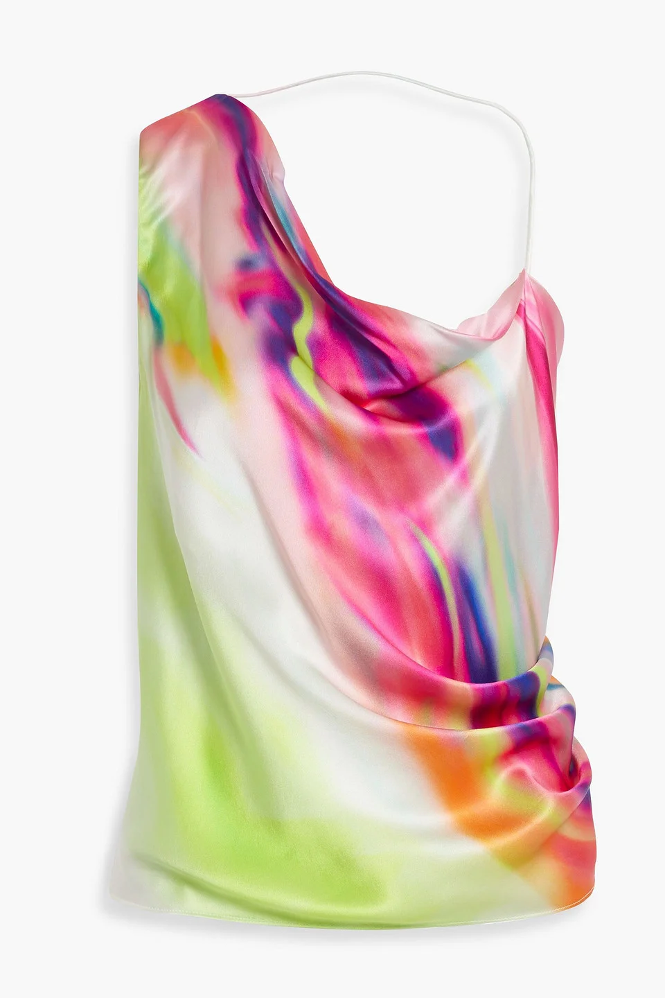 Top tie-dyed silk-satin draped slips on non-stretchy fabric mid-weight fabric dry clean imported 100% Silk Product Code 1647597301357098