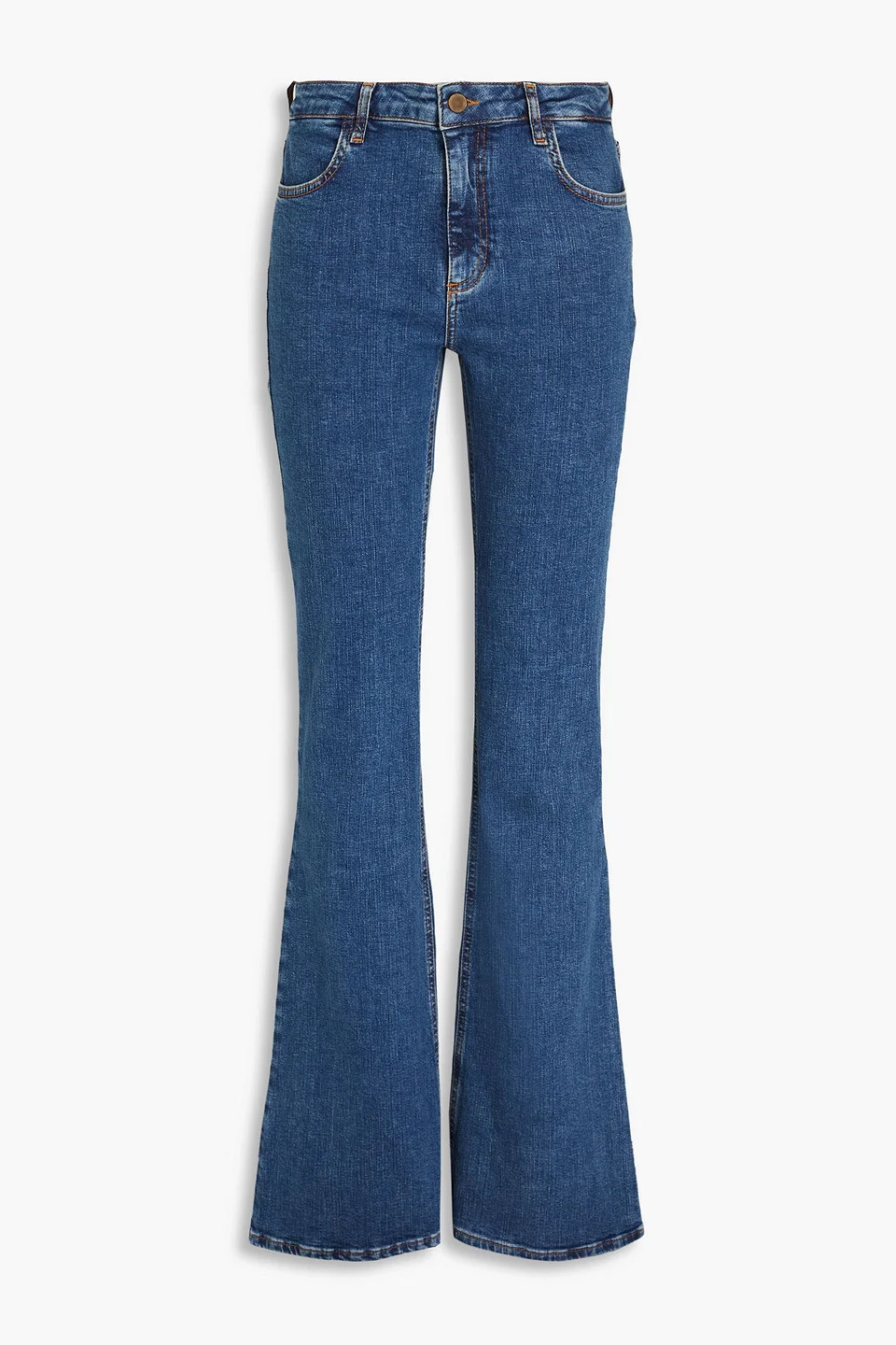 Flared jeans denim belt loops high-rise cut five pockets button and concealed zip fastening at front mid-weight, slightly stretchy fabric hand wash imported 98% Cotton 2% Elastane Product Code 1647597346724634