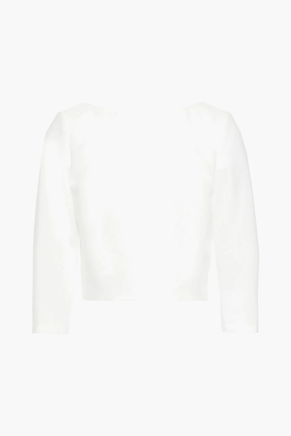 Top crepe cropped concealed zip fastening along back fully lined non-stretchy fabric mid-weight fabric dry clean imported 100% Polyester Product Code 32027475399845702