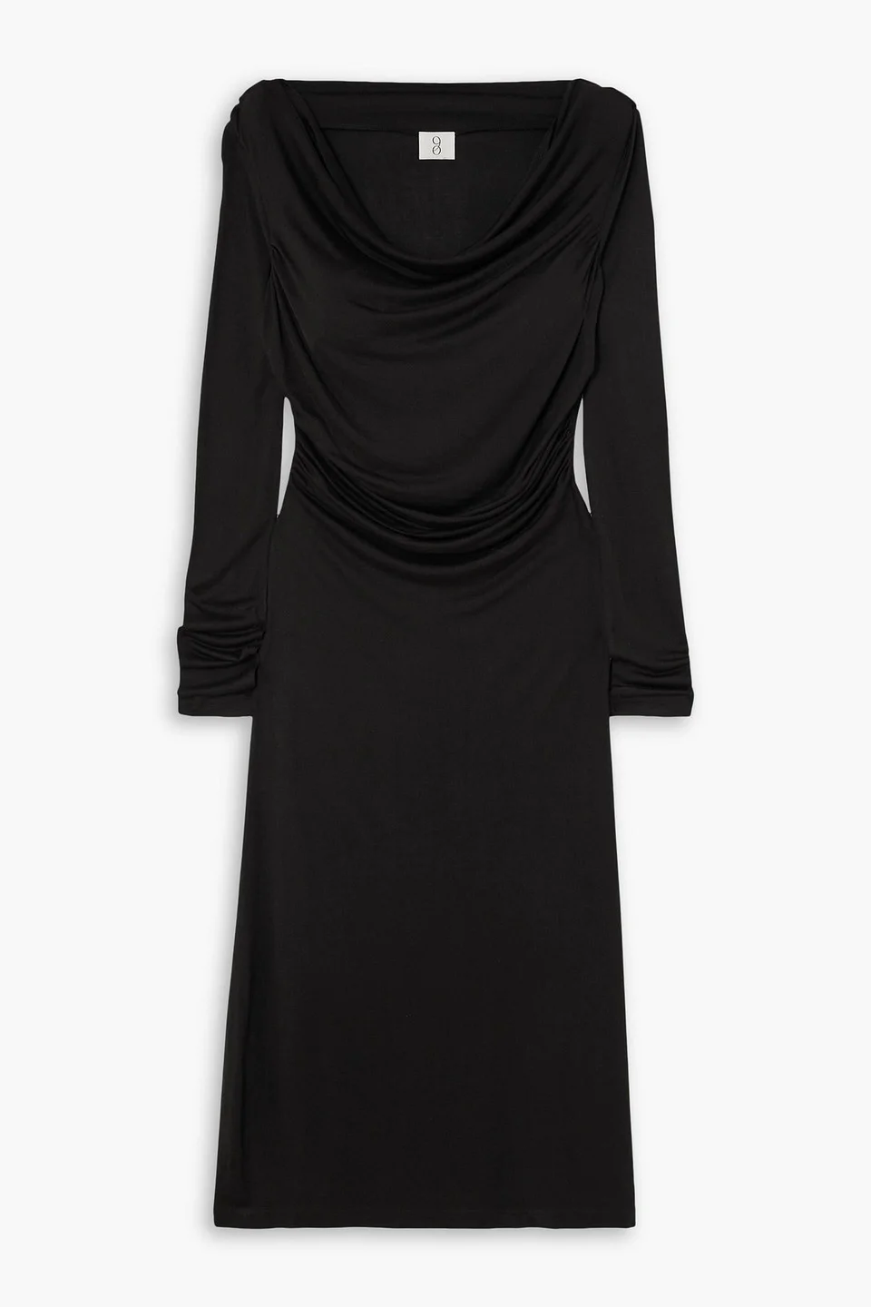 Dress stretch-micro modal draped shoulder pads slips on mid-weight, stretchy fabric machine wash or dry clean imported Ninety Percent has a mindful approach to design, which is why it chooses quality fabrics that'll last for several seasons. Cut from black stretch-Micro Modal, this 'Inver' dress has a draped neck and bodice and falls to a midi length. Style it with sandals, switching to a knee boot for winter. 100% Micro modal Product Code 1647597349019850