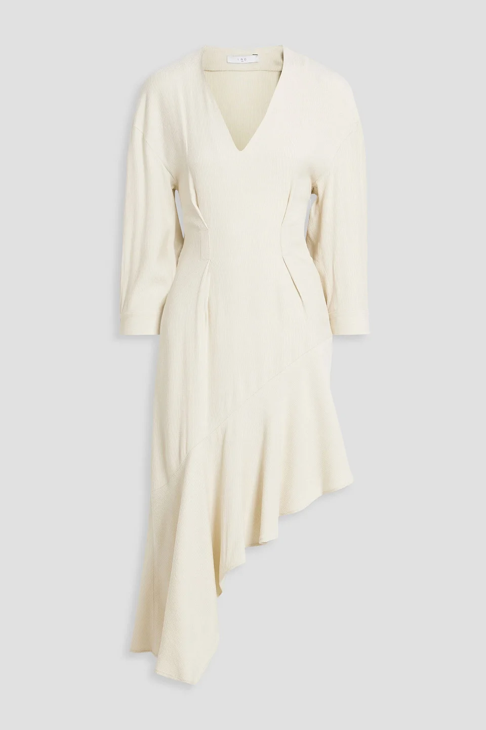 Dress chenille snap-fastening cuffs asymmetric hem concealed zip fastening along side mid-weight, non-stretchy fabric dry clean imported 95% Polyester 5% Modal Product Code 1647597357157526