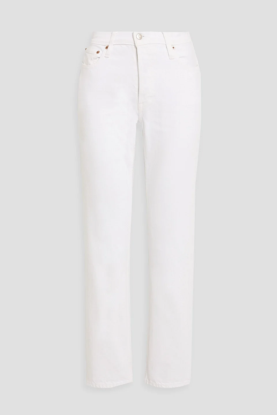 Straight-leg jeans denim belt loops mid-rise cut five pockets partially concealed button fastenings along front mid-weight, non-stretchy fabric machine wash or dry clean 100% Cotton Product Code 46376663163019364