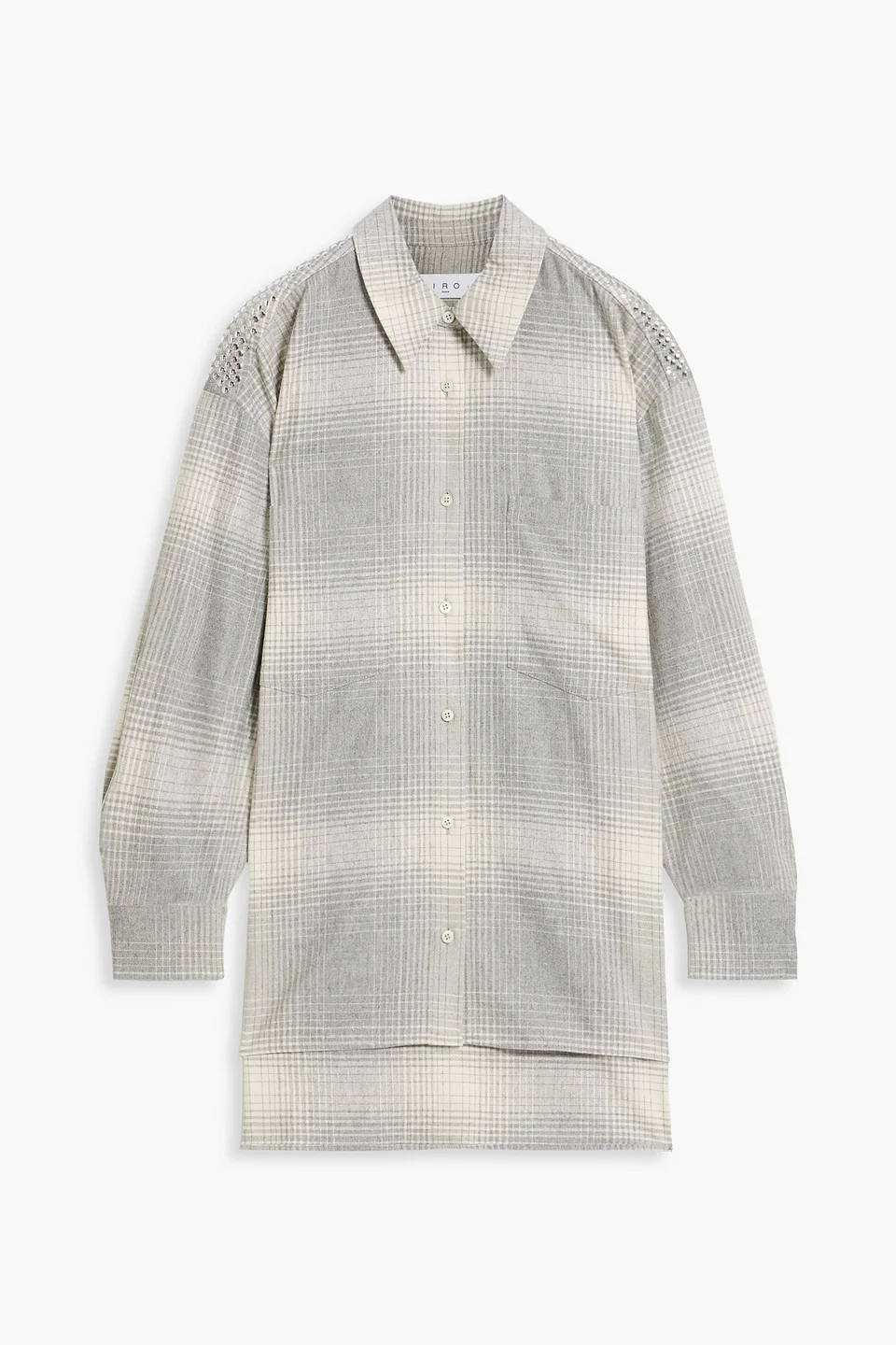 Shirt checked flannel studded buttoned cuffs breast pockets button fastenings through front mid-weight, non-stretchy fabric dry clean imported 36% Wool 31% Polyester 16% Viscose 14% Polyamide 3% Elastane Product Code 1647597357154695