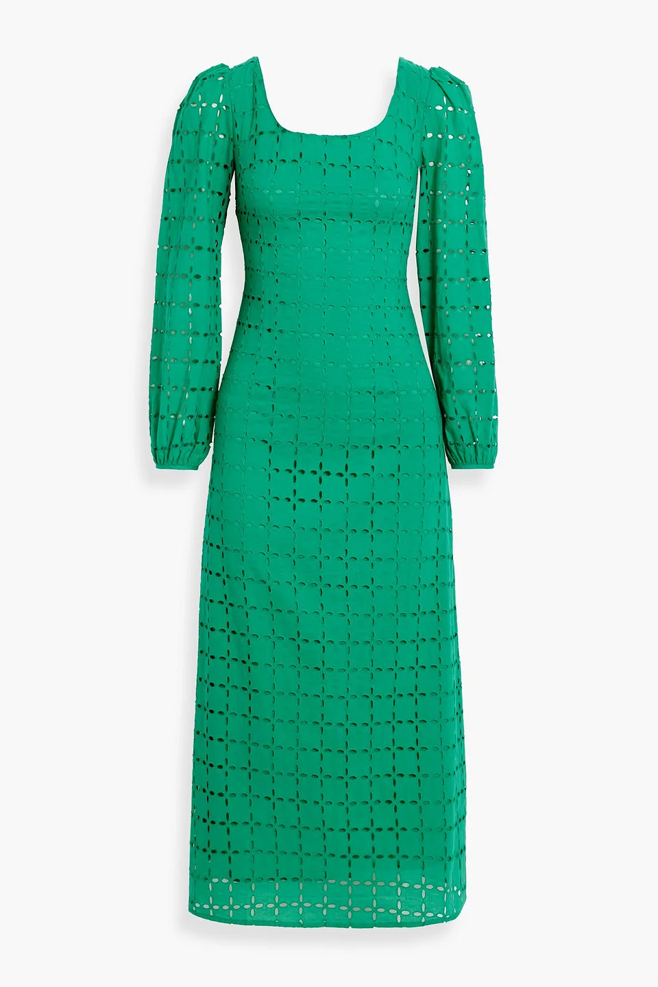 Dress broderie anglaise cotton back slit concealed zip fastening along side fully lined mid-weight, non-stretchy fabric dry clean imported 100% Cotton Product Code 1647597356607584