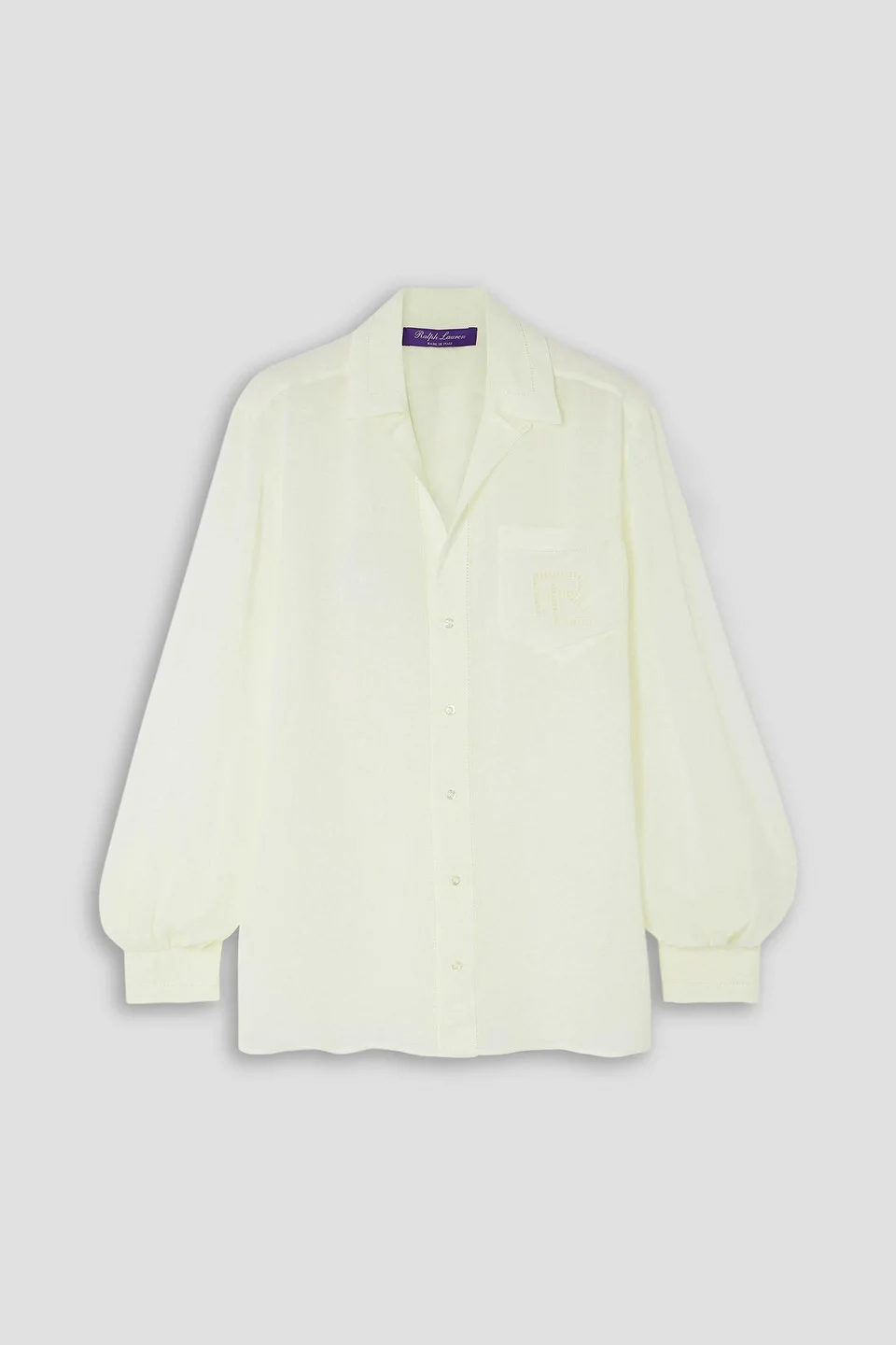 Shirt voile broderie anglaise trims buttoned cuffs breast pocket side slits button fastenings through front lightweight, non-stretchy fabric dry clean made in italy 60% Viscose 40% Linen Product Code 46376663163070114