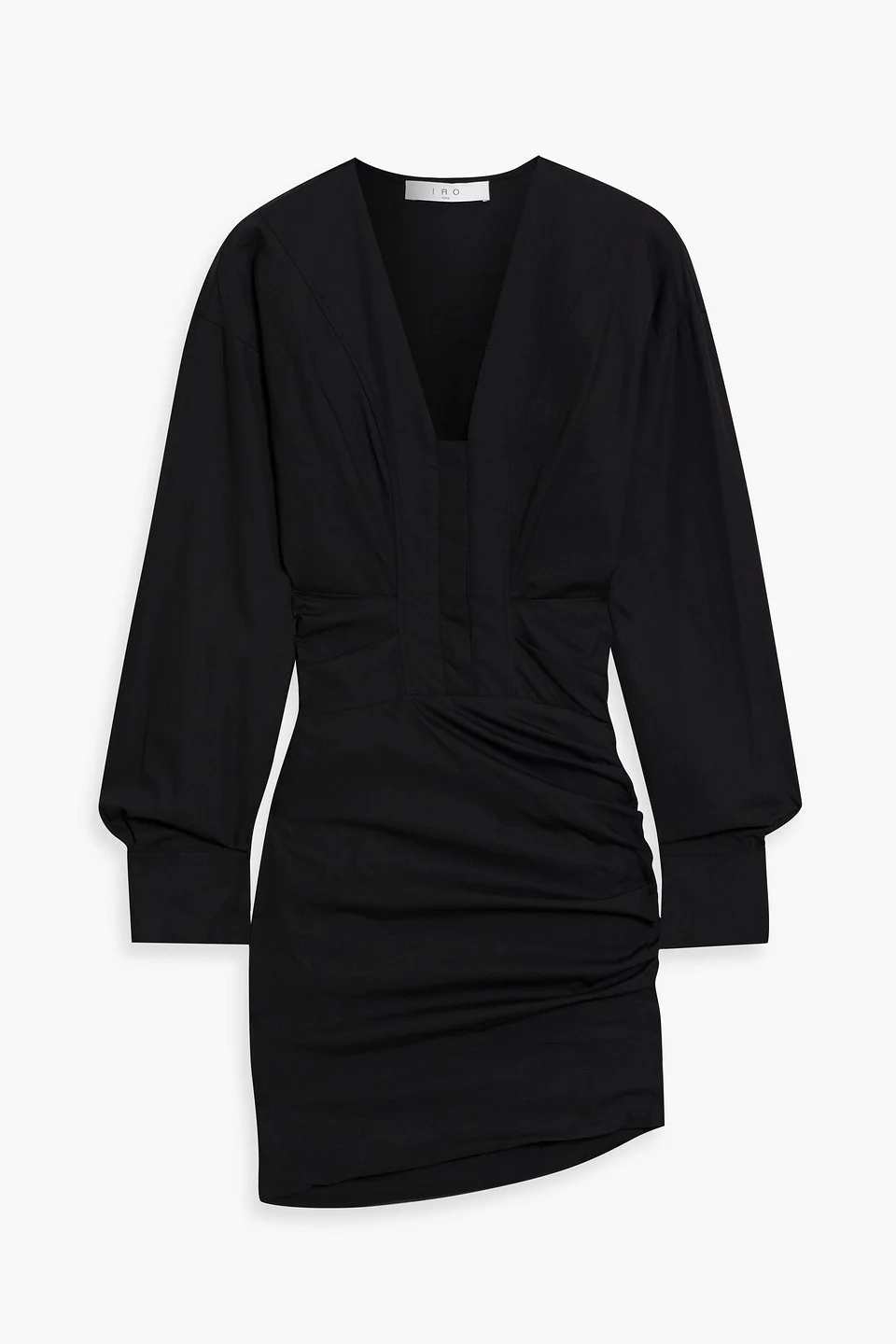 Dress cotton-poplin draped ruched buttoned cuffs concealed button fastenings along front fully lined mid-weight, non-stretchy fabric dry clean imported 100% Cotton Product Code 46376663162846258