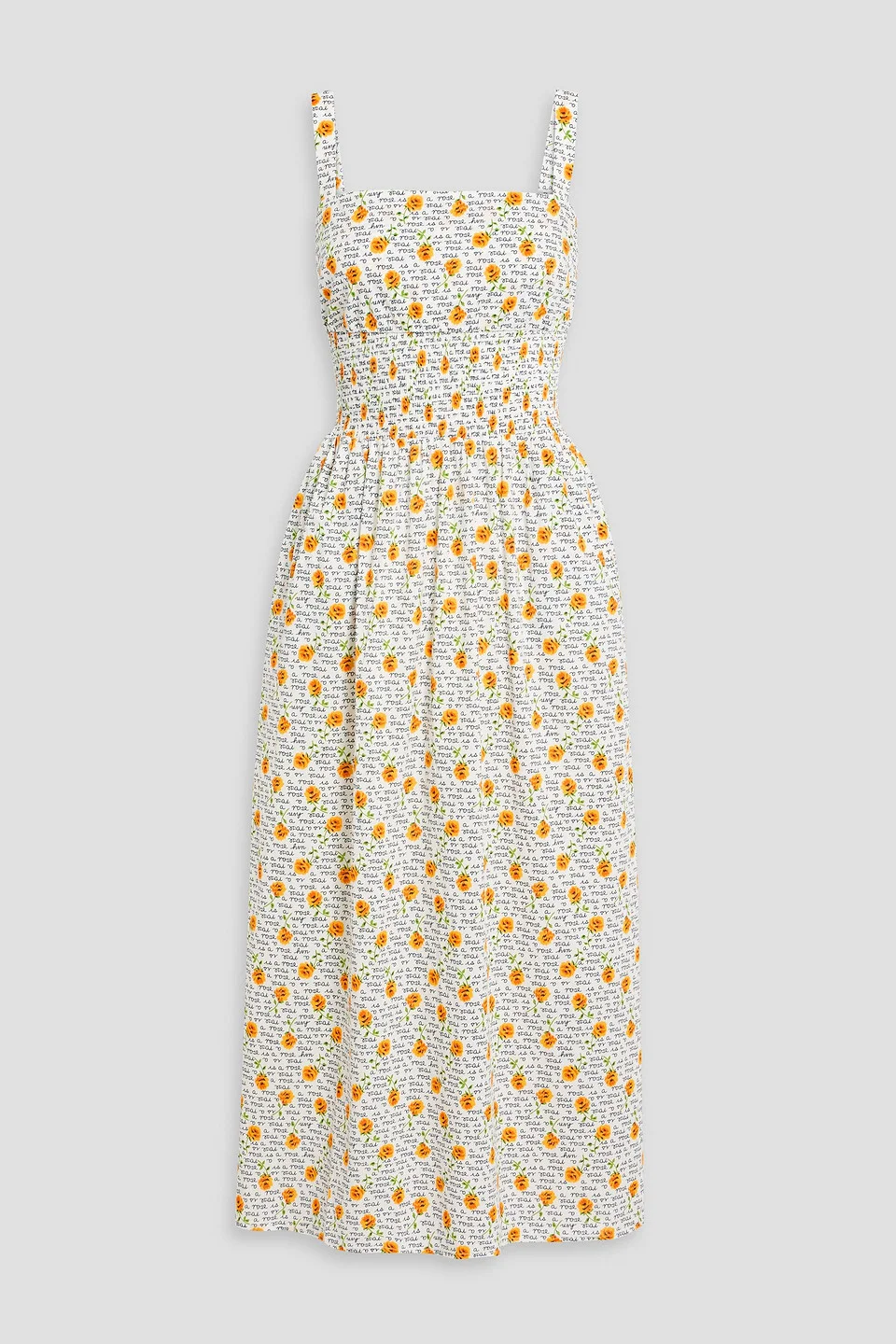 Laura shirred printed cotton midi dress