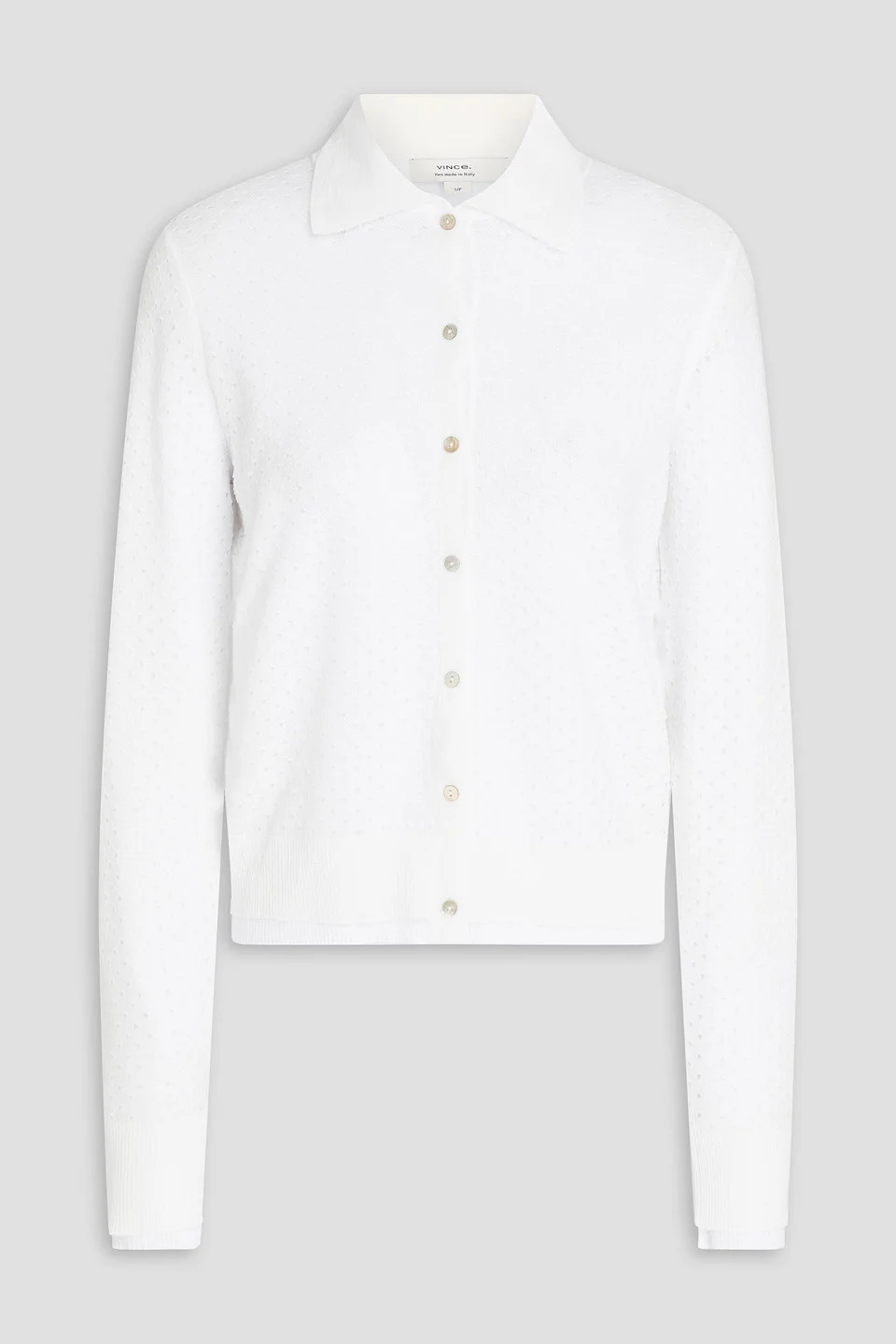 Cardigan pointelle-knit cotton-blend layered ribbed trims button fastenings through front mid-weight knit hand wash or dry clean imported 82% Cotton 18% Polyamide Product Code 46376663163013053