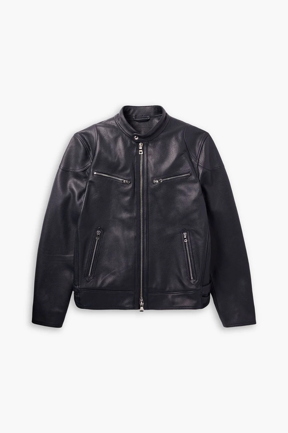 Jacket leather buckled waist tabs zipped cuffs zipped pockets two-way zip fastening through front snap fastening at neck fully lined firm, non-stretchy leather specialist clean imported 100% Calf-skin leather Product Code 46376663163064228