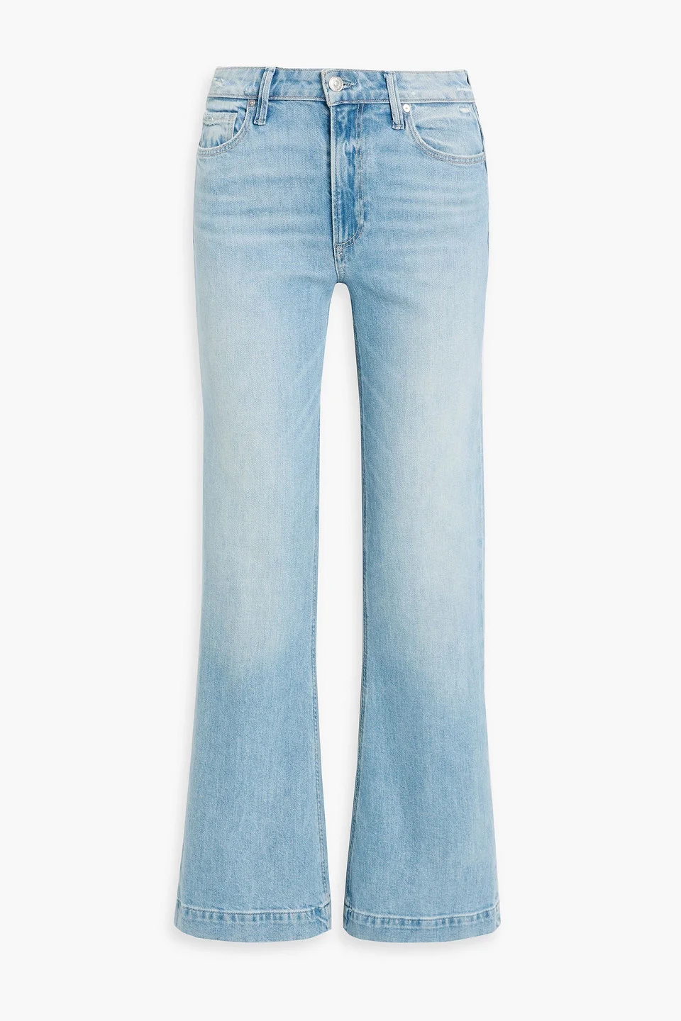 Bootcut jeans denim distressed trims belt loops high-rise cut five pockets button and concealed zip fastening at front mid-weight, non-stretchy fabric machine wash or dry clean imported 98% Cotton 2% Elastane Product Code 46376663162997374