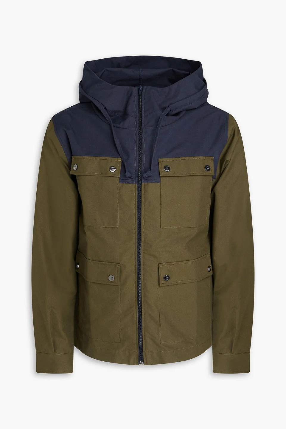 Jacket two-tone cotton-canvas drawstring hood snap-fastening cuffs front flap pockets chest pockets zip fastening through front mid-weight, breathable fabric dry clean imported Does your slopestyle signal serious shred? Challenge accepted. This piece is built for top-notch performance with really good looks. Discover more from We Norwegians here. 100% Cotton Product Code 46376663162949770