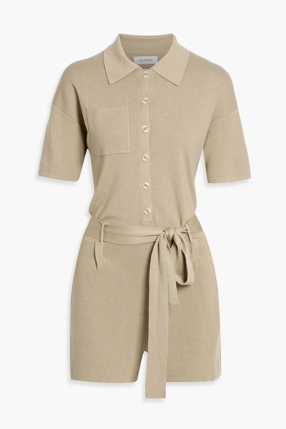 Playsuit knitted detachable waist tie breast pocket button fastenings along front mid-weight knit hand wash imported 40% Lyocell 40% Naia™ 15% Linen 5% Silk Product Code 46376663163096175