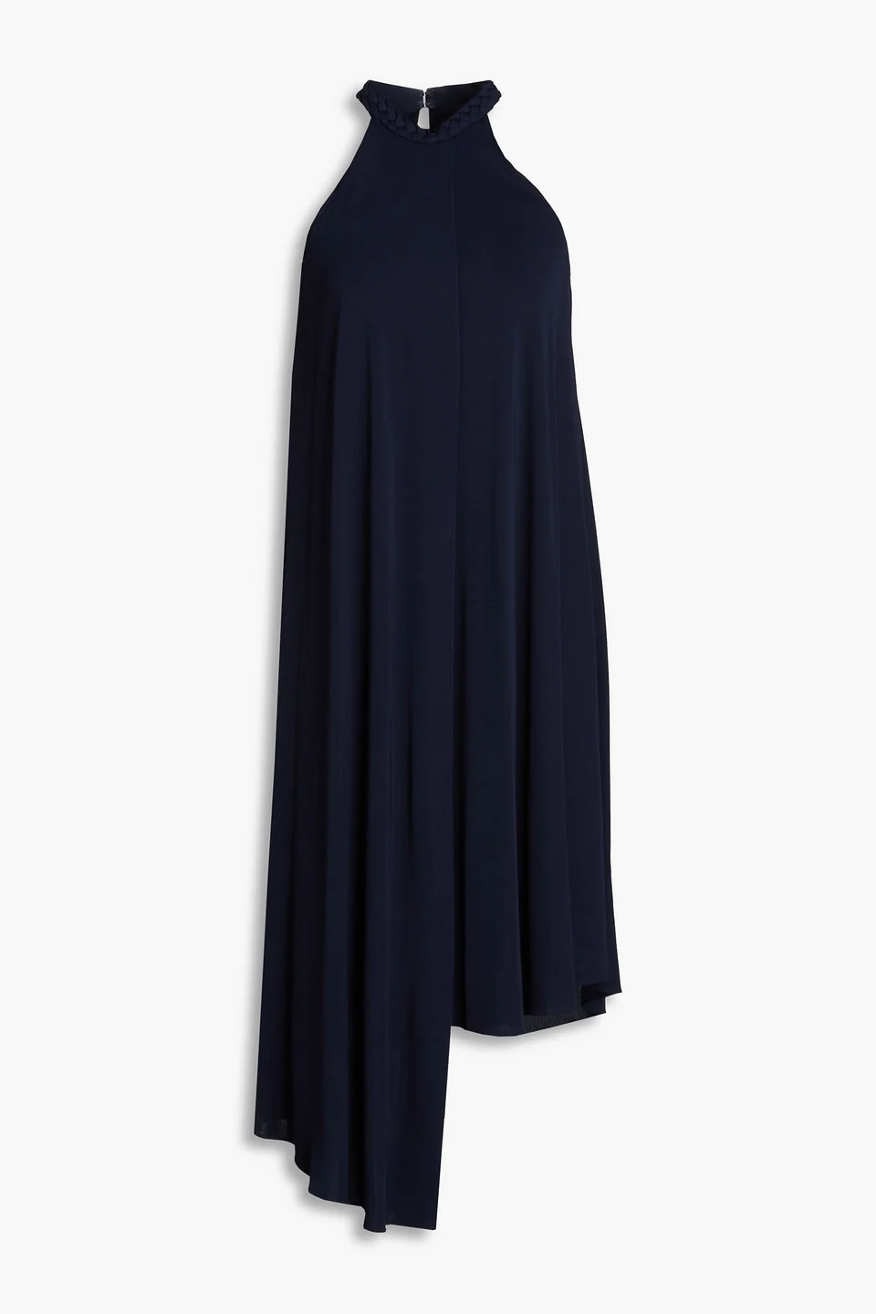Dress jersey braided trims draped hook-fastening keyhole at back non-stretchy fabric mid-weight fabric dry clean imported 70% Rayon 30% Polyester Product Code 1647597318327913