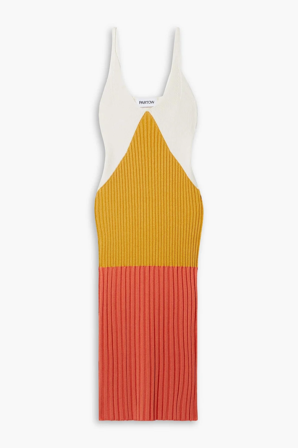Dress color-block ribbed-knit side slits slips on mid-weight knit dry clean made in italy Partow's 'Marilyn' dress is at once relaxed and glamorous, making it ideal for traveling. It's been made from a mid-weight ribbed-knit in a geometric color-block design. It hugs your figure and has elongated straps that dangle from the shoulders. Wear yours on its own or over tailored pants. 87% Viscose 13% Polyamide Product Code 1647597302149860