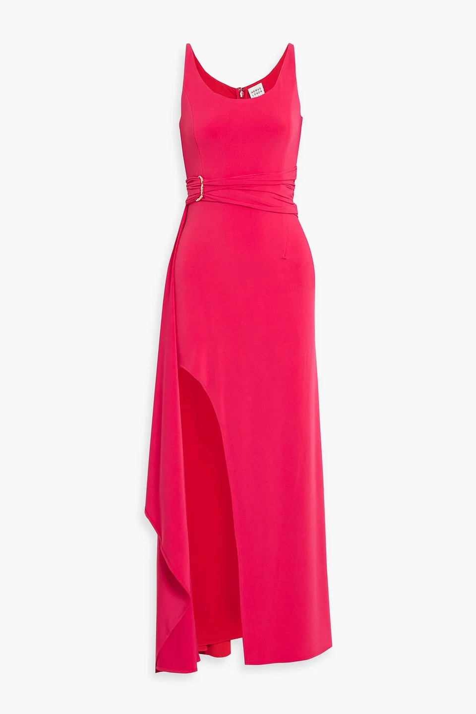 Style yours with drop earrings and towering heels for an evening spent celebrating gown stretch-jersey buckle-embellished draped front slit concealed hook and zip fastening at back fully lined mid-weight, stretchy fabric machine wash or dry clean imported 96% Polyester 4% Spandex Product Code 46376663163068106