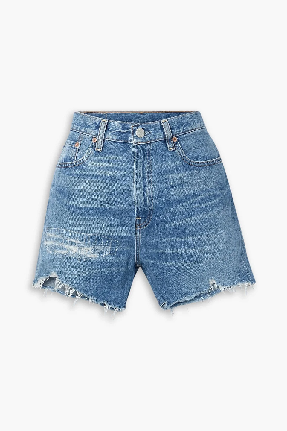 Shorts faded denim distressed belt loops high-rise cut multipockets button and concealed zip fastening at front non-stretchy fabric mid-weight fabric machine wash imported 100% Cotton Product Code 1647597327790736