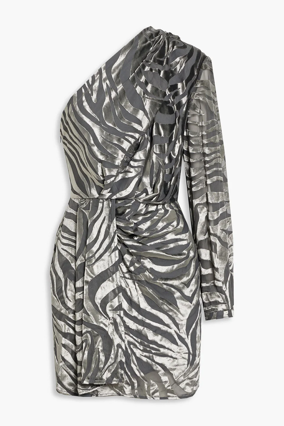 Nimas one-sleeve draped devoré-velvet mini dress