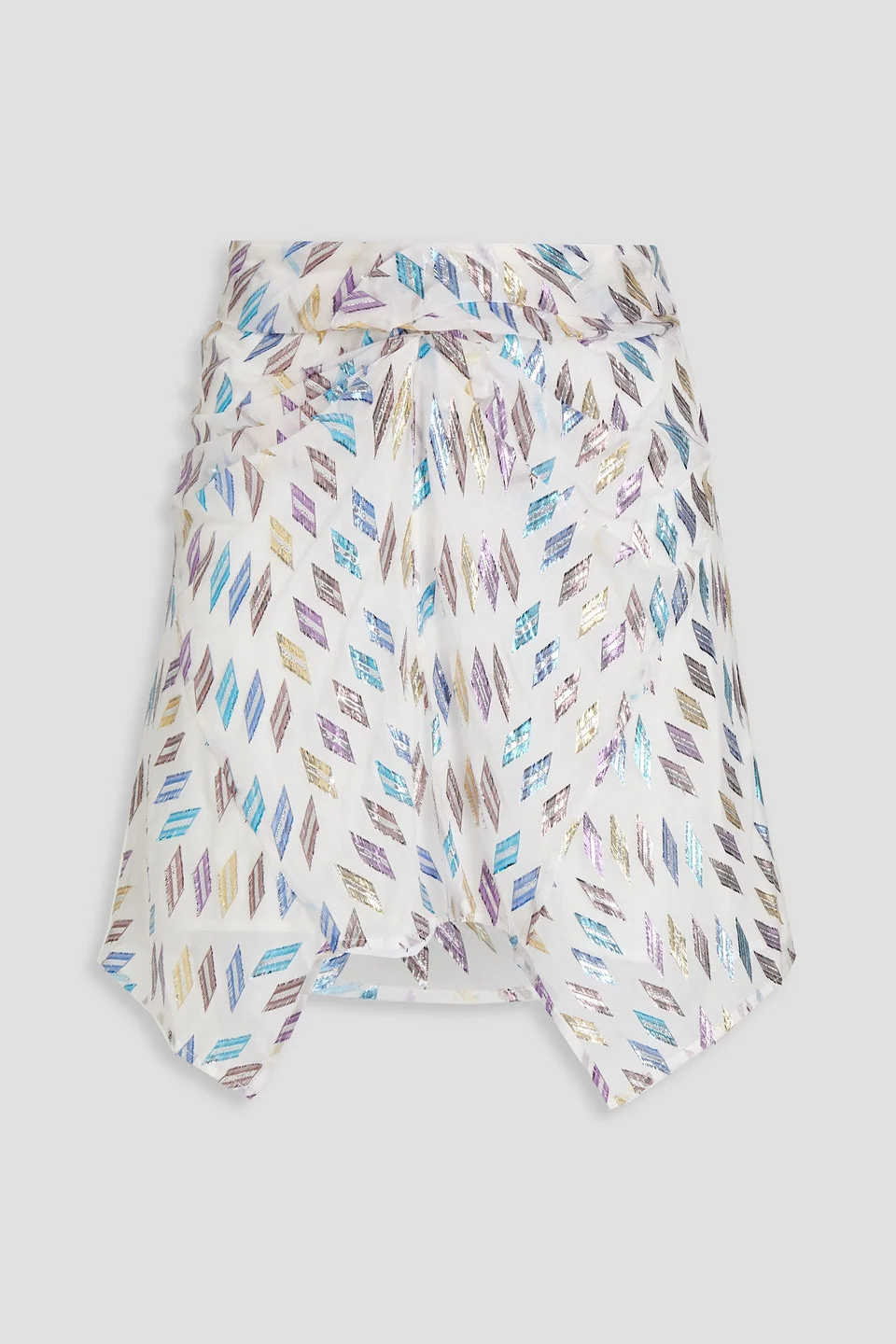 Noemia asymmetric metallic fil coupé silk-blend mini skirt