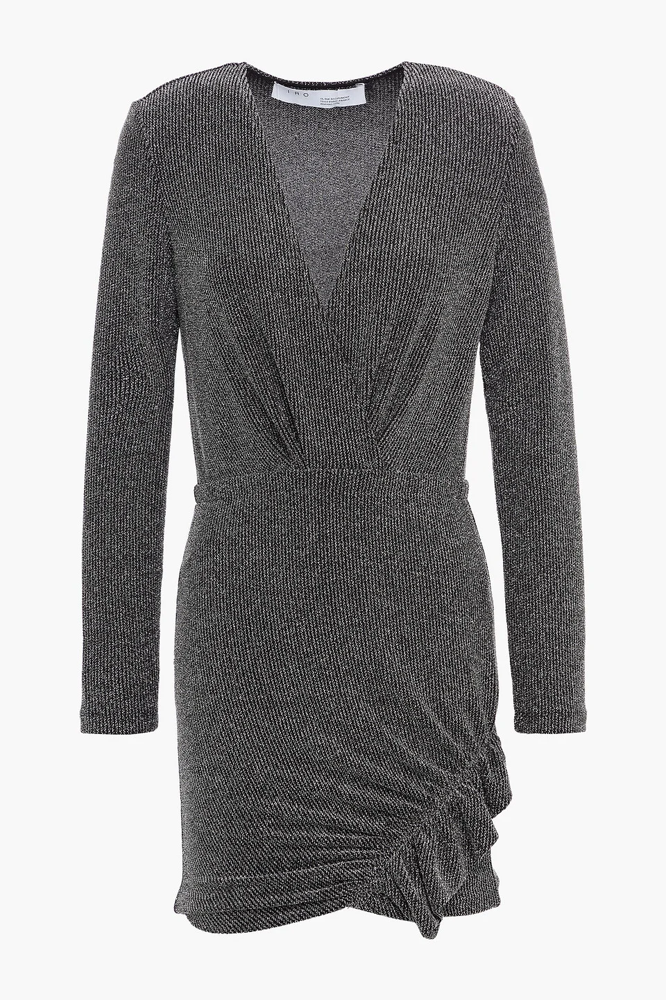 Noize wrap-effect ruffled metallic knitted mini dress
