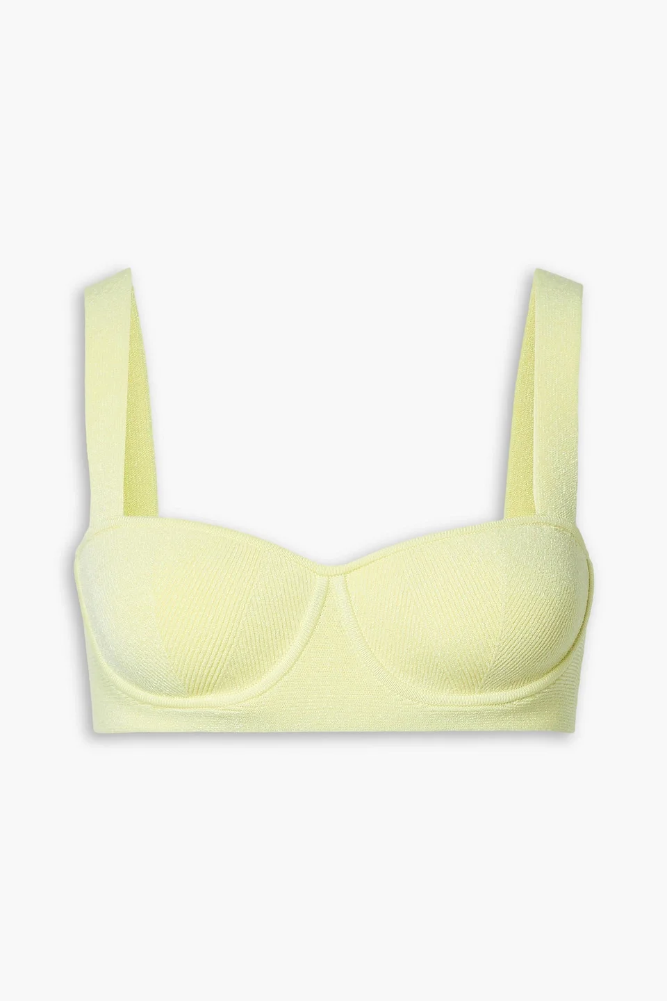 Top stretch-knit cropped underwired cups slips on mid-weight knit hand wash or dry clean imported Galvan designs elegant pieces you'll turn to time and again. This 'NYX' top is made from pastel-yellow stretch-knit and fitted with underwired cups to lift and support your bust. Complement the cropped silhouette with high-rise pants and skirts. 76% Viscose 12% Polyamide 11% Polyester 1% Elastane Product Code 1647597346237697