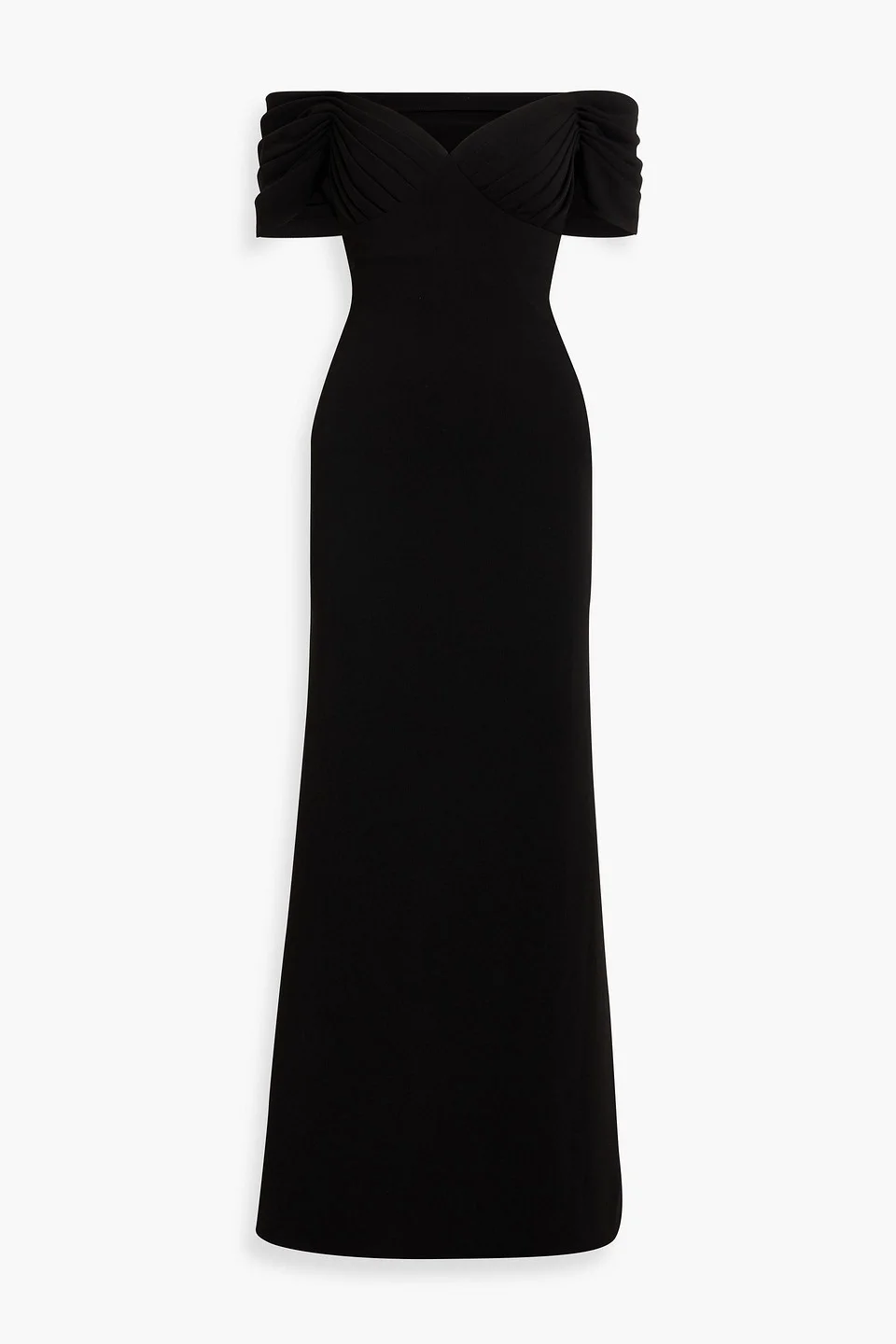 Gown crepe cutout draped concealed hook and zip fastening at back internal boning mid-weight, slightly stretchy fabric dry clean imported If you’re searching for the perfect gown – always bet on black. This Badgely Mischka stunner has an off-the-shoulder neckline and is made from figure-skimming crepe. The cutout at the back shows a glimpse of skin, too. 98% Polyester 2% Spandex Product Code 46376663163015434