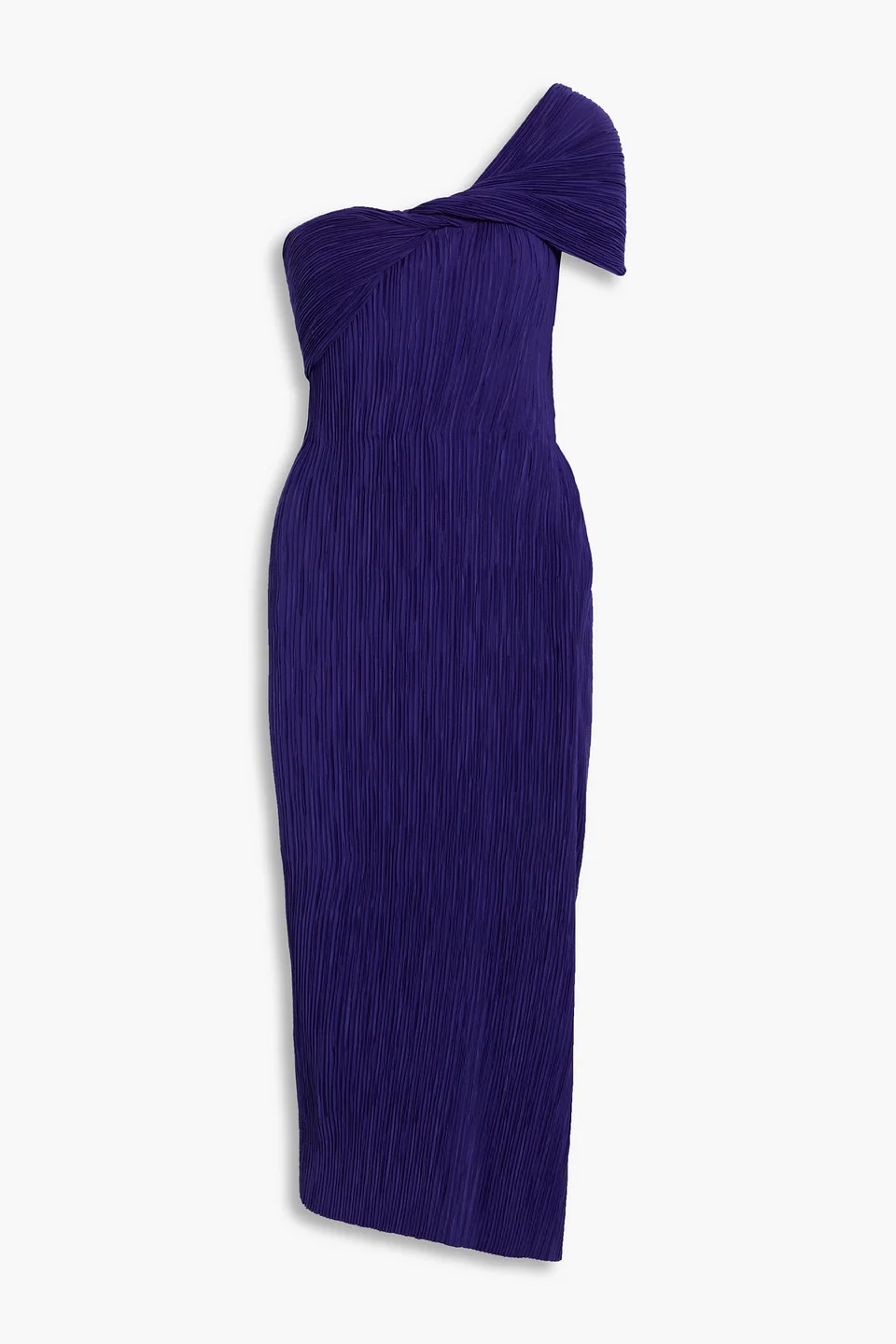 Off-the-shoulder dress crepe plisse twisted front split fully lined concealed zip fastening along side non-stretchy fabric lightweight fabric dry clean 100% Polyester Product Code 1647597305148144