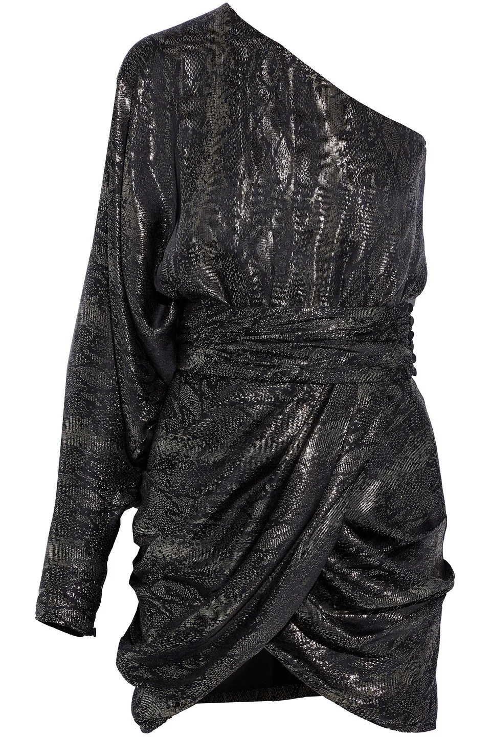One-shoulder draped metallic silk-blend jacquard mini dress