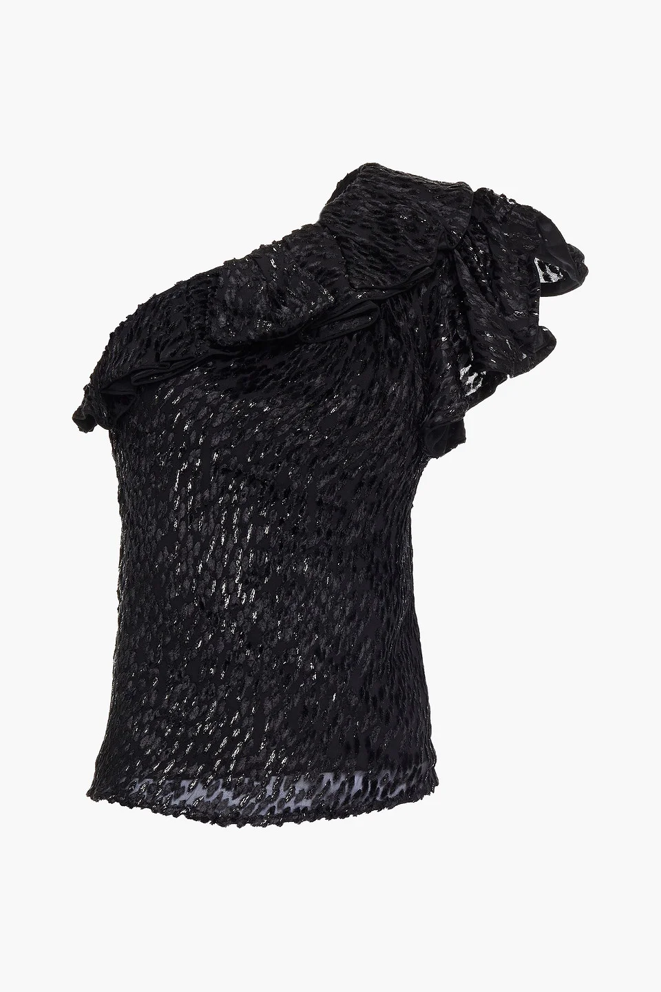 One-shoulder ruffled devoré-velvet top